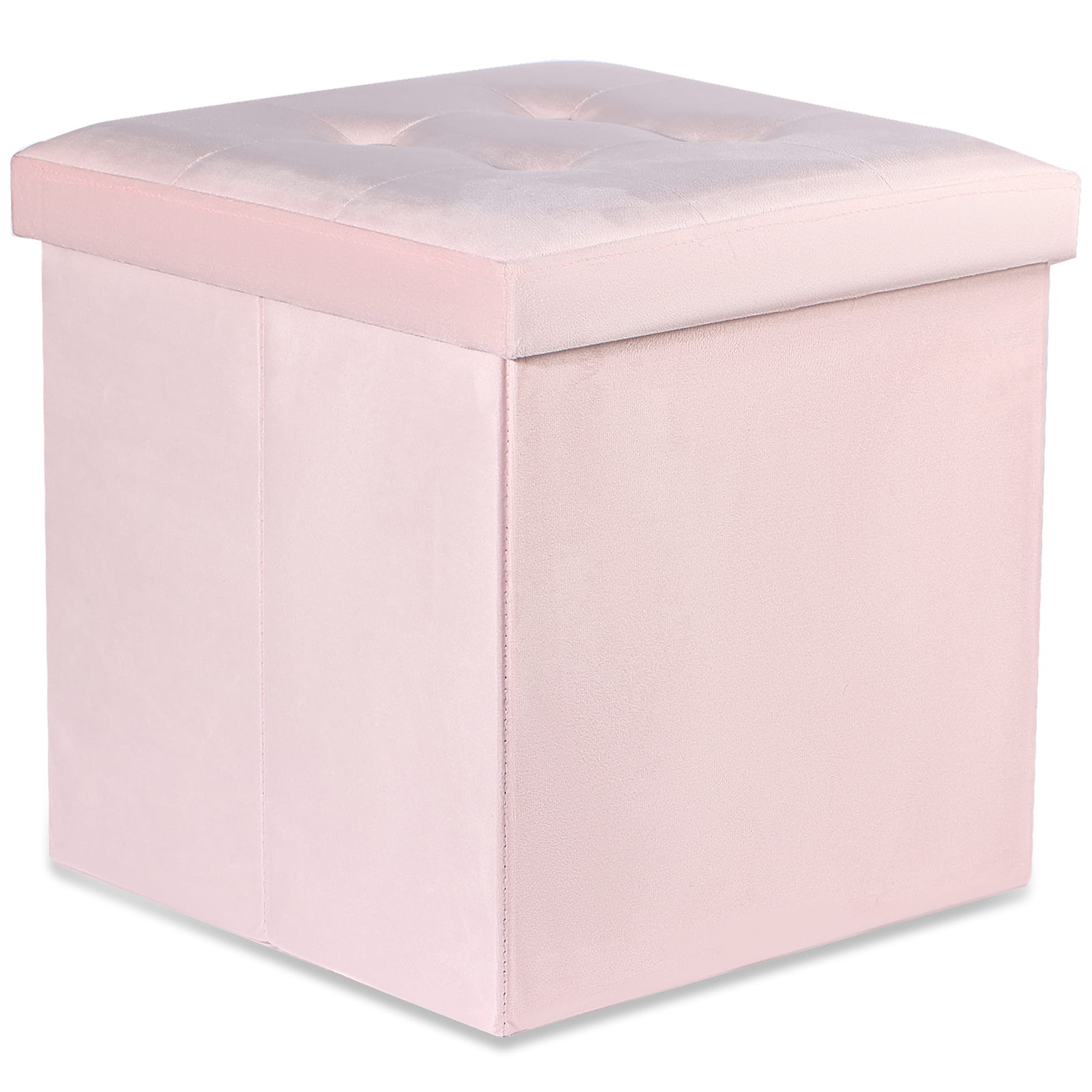 Pufa składana L z guzikami, schowek, podnóżek - 38x38x38cm aksamit róż