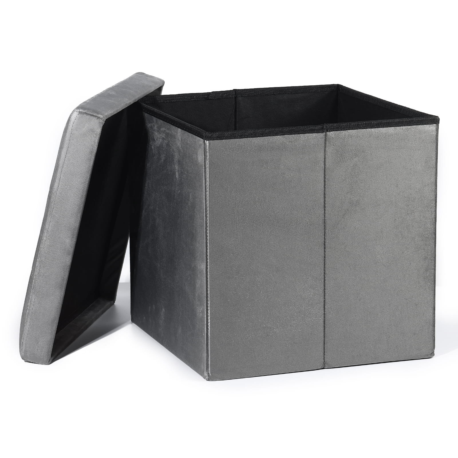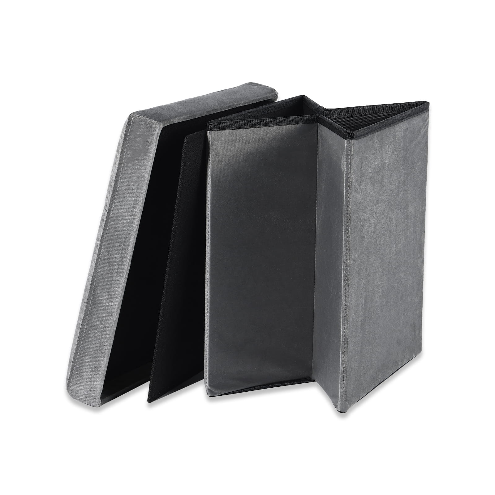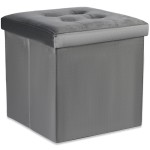 Pufa składana L z guzikami, schowek, podnóżek - 38x38x38cm aksamit szara