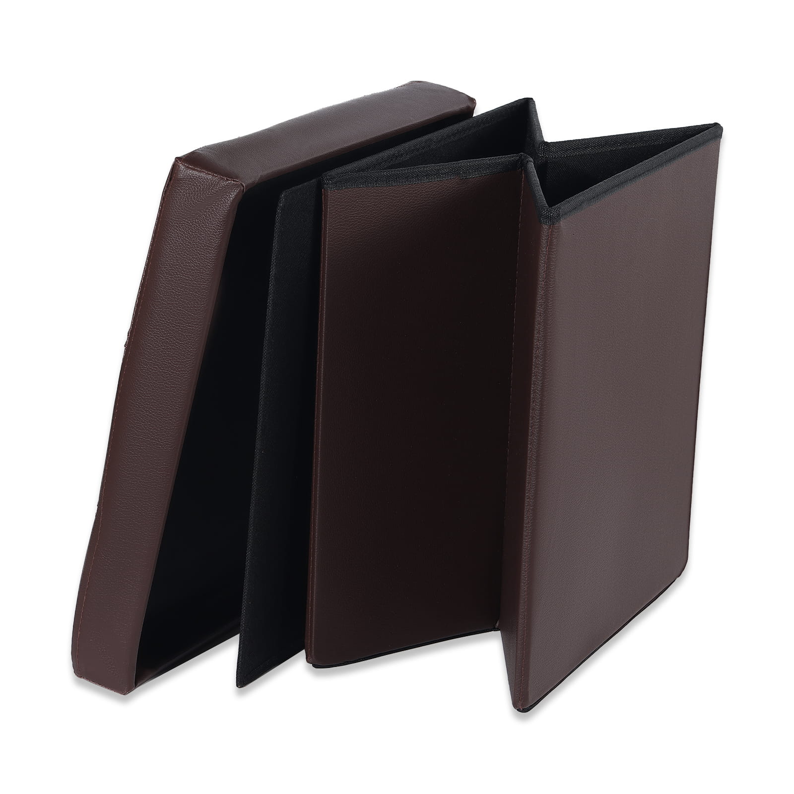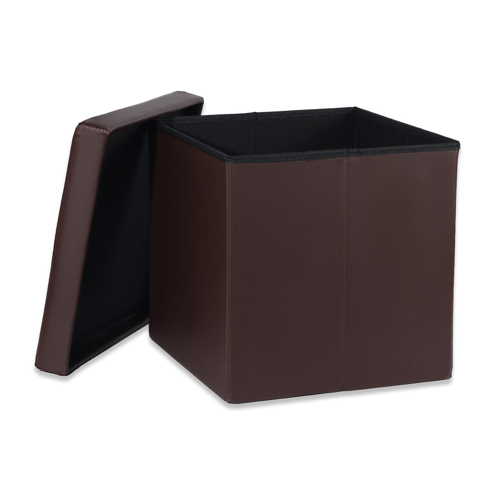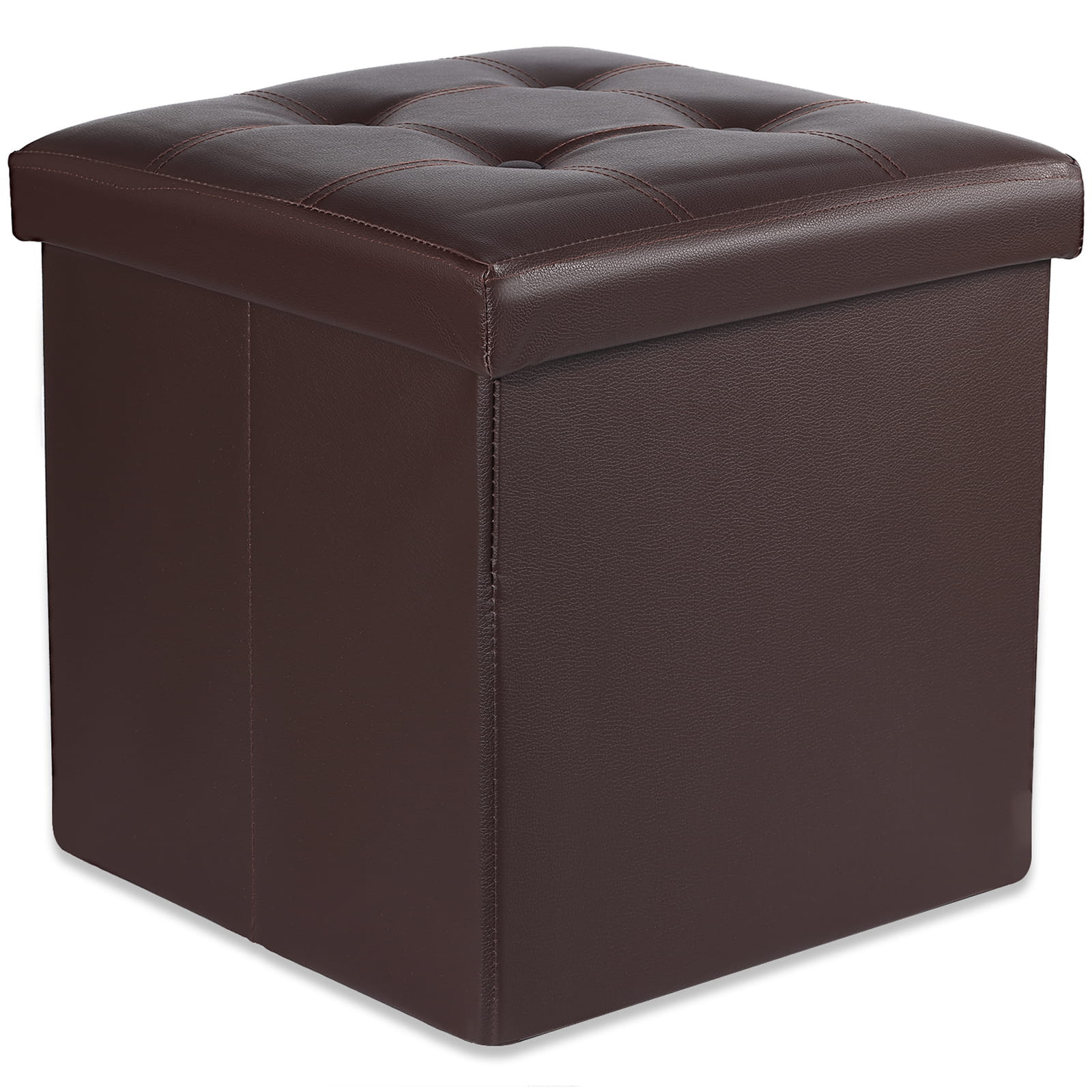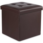 Pufa składana L z guzikami podnóżek, schowek- 38x38x38cm ekoskóra brąz