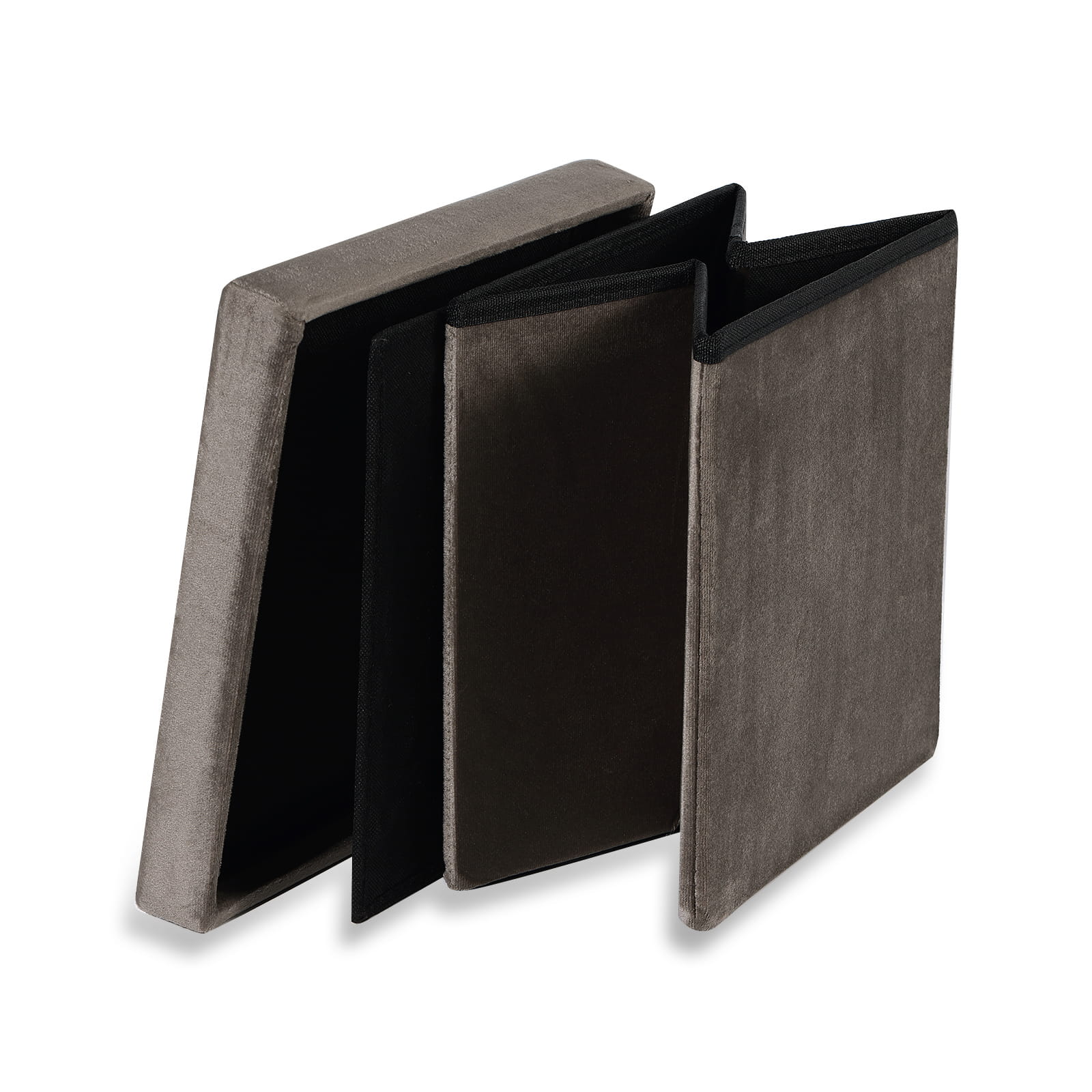 Pufa składana M brązowa, schowek, podnóżek- 30x30x30cm aksamit brąz