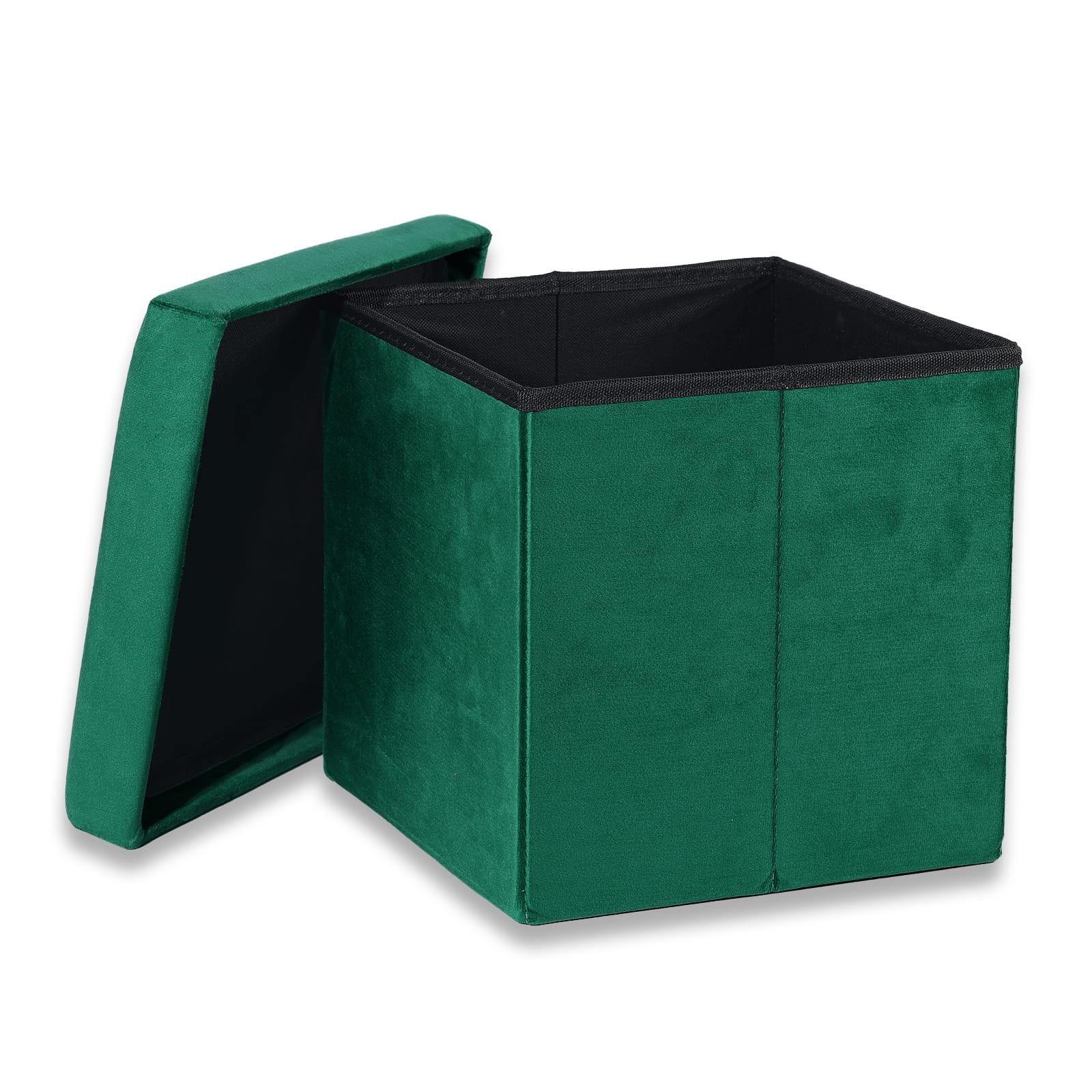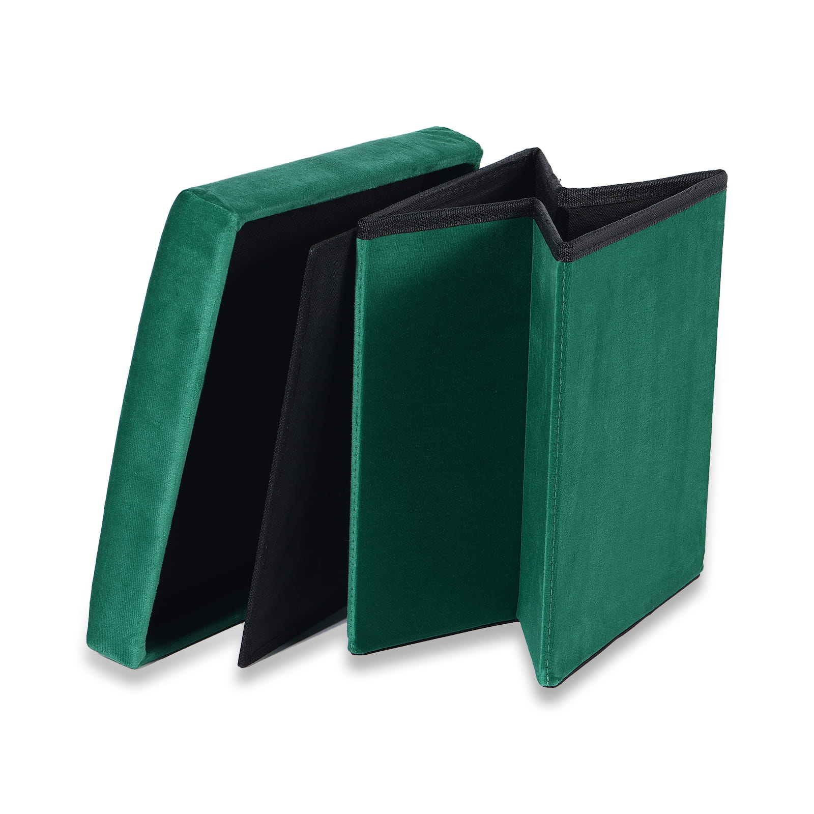 Pufa składana M zielona, schowek, podnóżek - 30x30x30cm aksamit zielony