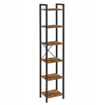 Regał wykonany w stylu rustykalnym, czyli odpowiednio stylizowanym na wiekowy. Półki regału są wąskie i stabilne, a więc możemy umieścić na nich książki, kwiaty w wazonach, ozdobne figurki, dziecięce zabawki oraz ramki ze zdjęciami. Regał cechuje się uniwersalnością oraz funkcjonalnością, będzie świetnie pasował do salonu, sypialni, przedpokoju, gabinetu, a 6 półek ułatwi nam dostęp do ulubionych rzeczy. Regał w stylu loft to ostatni krzyk mody. Na pewno wpasuje się w wystrój niejednego pomieszczenia. Stalowa konstrukcja zapewnia stabilność mebla. Idealnie spasowane elementy ramy oraz rustykalna oprawa półek nadadzą Twojemu wnętrzu wdzięku. Zadbaj o estetykę swojego salonu, sypialni, korytarza czy też biura wybierając produkty sprawdzone, o najwyższej jakości wykonania.