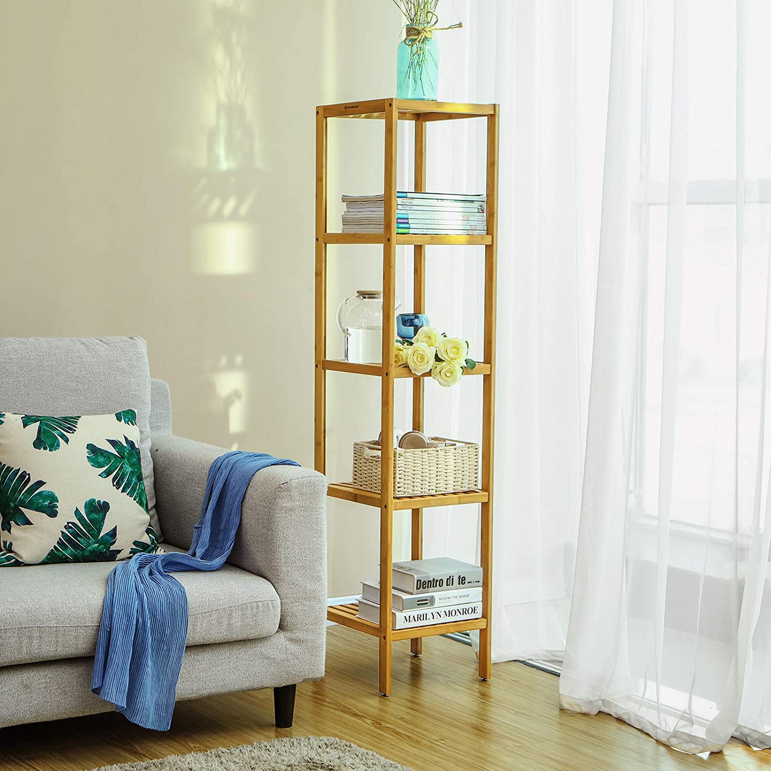 Bambusowy regał to bardzo praktyczny i elegancki mebel, który znajdzie swoje zastosowanie w łazience, przedpokoju, garderobie czy też w sypialni.