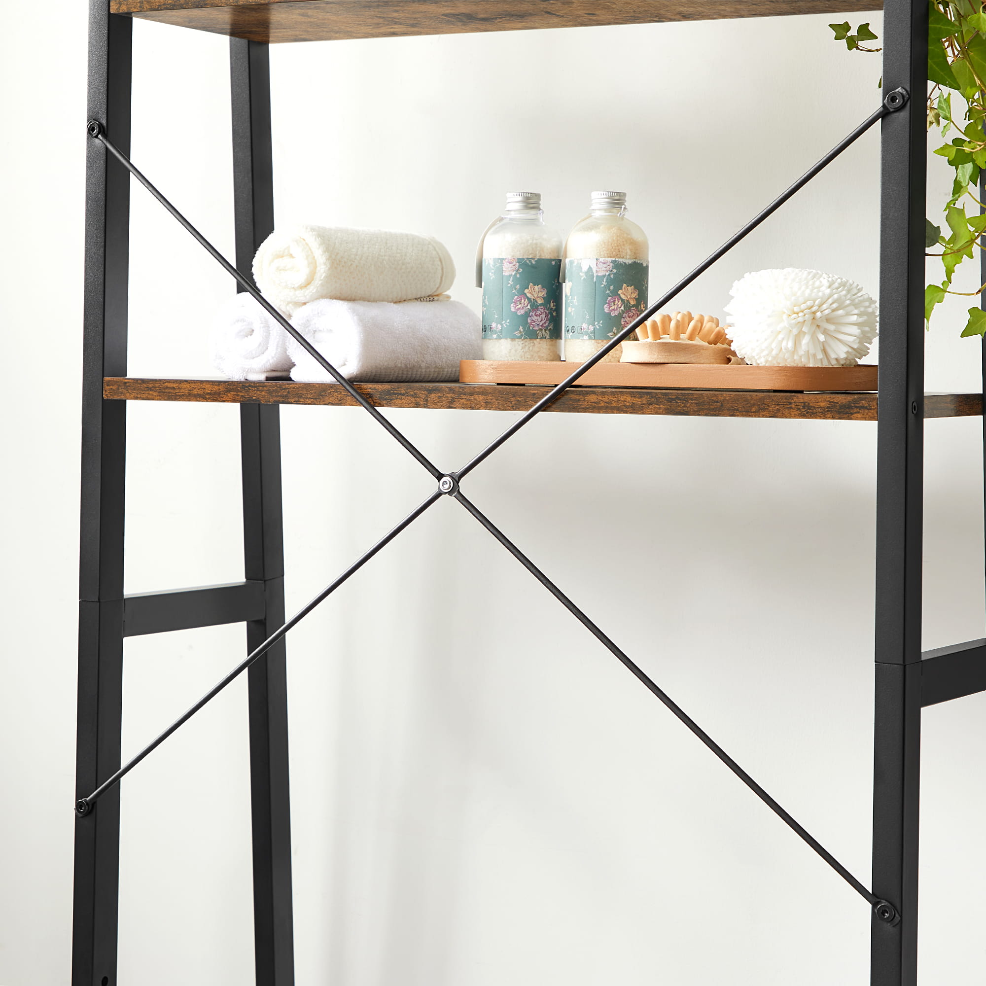 REGAŁ ŁAZIENKOWY NAD TOALETĘ, PRALKĘ, KOSZ RUSTYKALNY BRĄZ, W STYLU LOFT