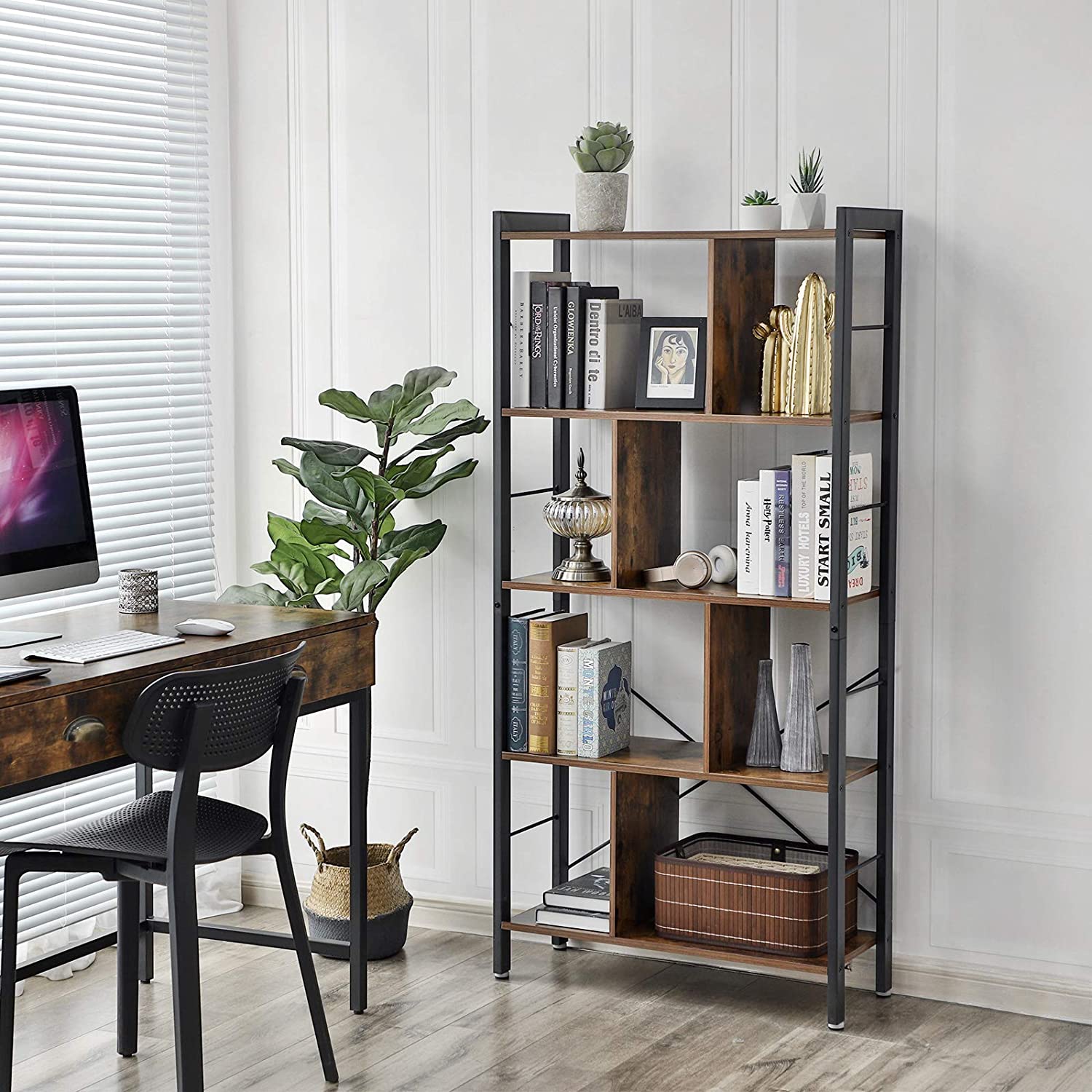 Regał cechuje się uniwersalnością oraz funkcjonalnością, będzie świetnie pasował do salonu, sypialni, przedpokoju, gabinetu, a 5 półek ułatwi nam dostęp do ulubionych rzeczy.