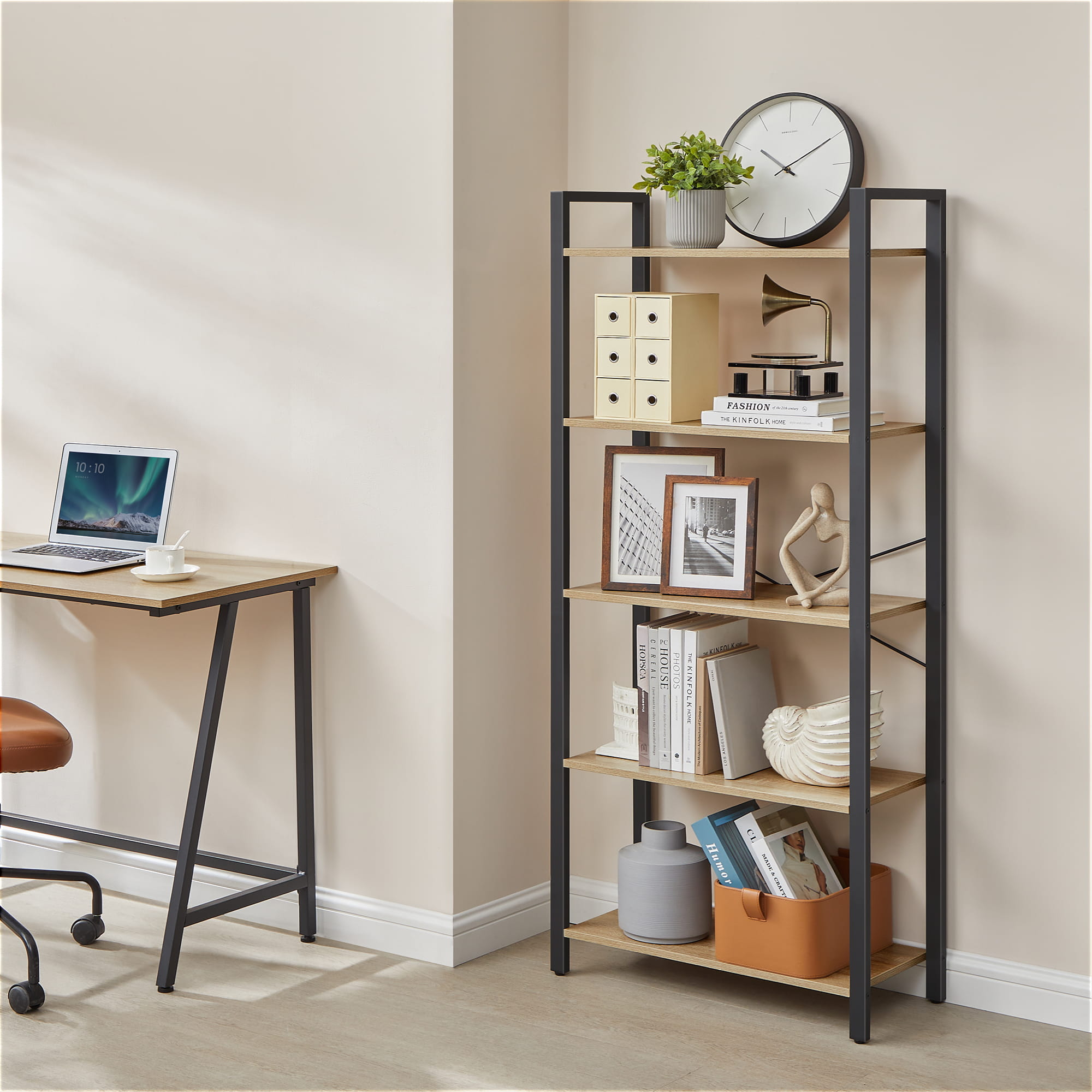 Regał cechuje się uniwersalnością oraz funkcjonalnością, będzie świetnie pasował do salonu, sypialni, przedpokoju, domowego gabinetu, a 5 półek ułatwi nam dostęp do ulubionych rzeczy.