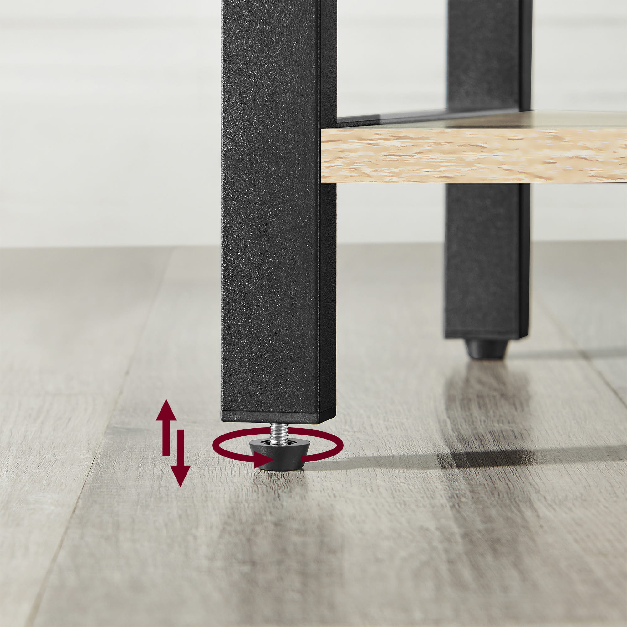 Regulowane nóżki pomogą w odpowiednim wypoziomowaniu mebla na delikatnie nierównej powierzchni.