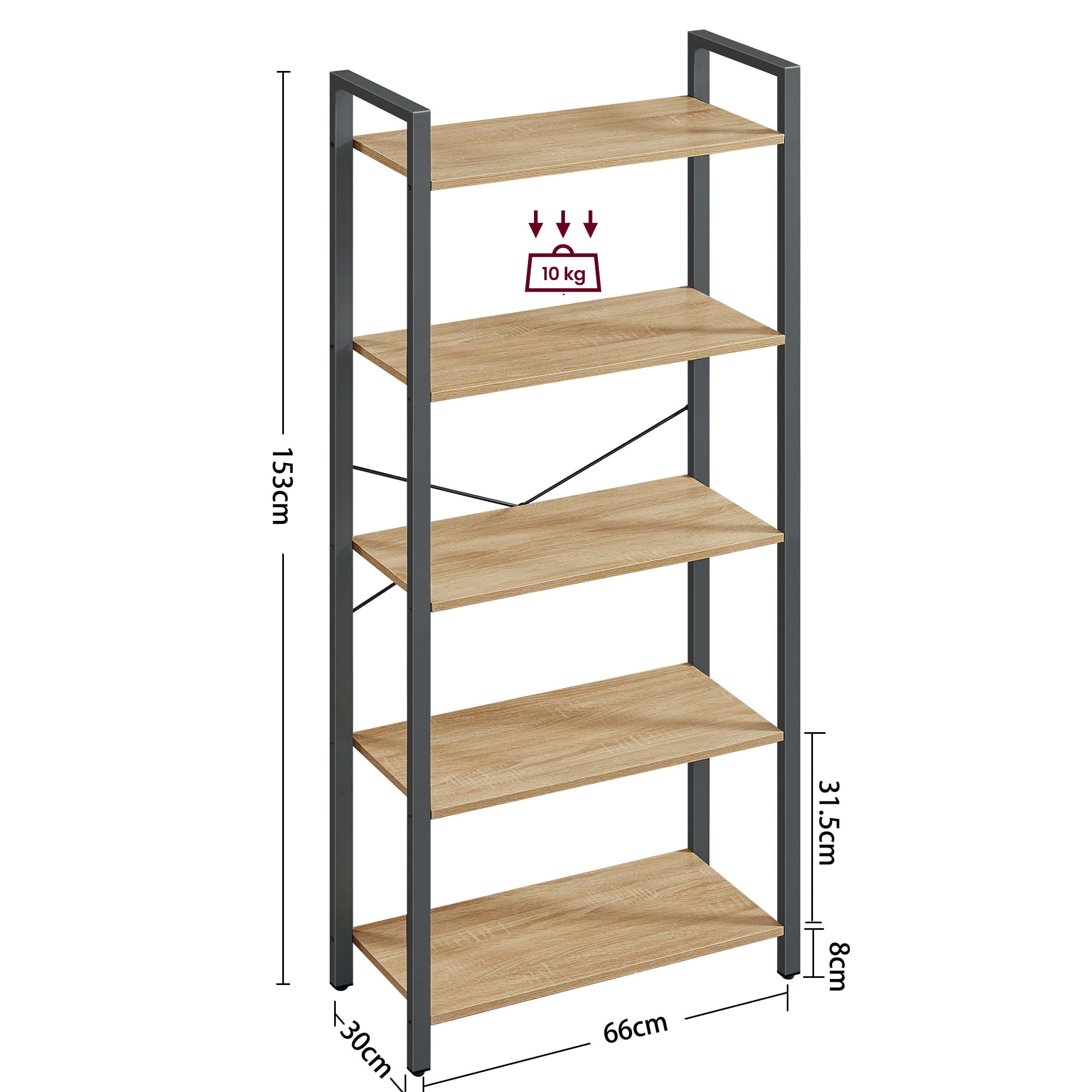 - Wymiary: 66 x 30 x 153 cm (szerokość x głębokość x wysokość)