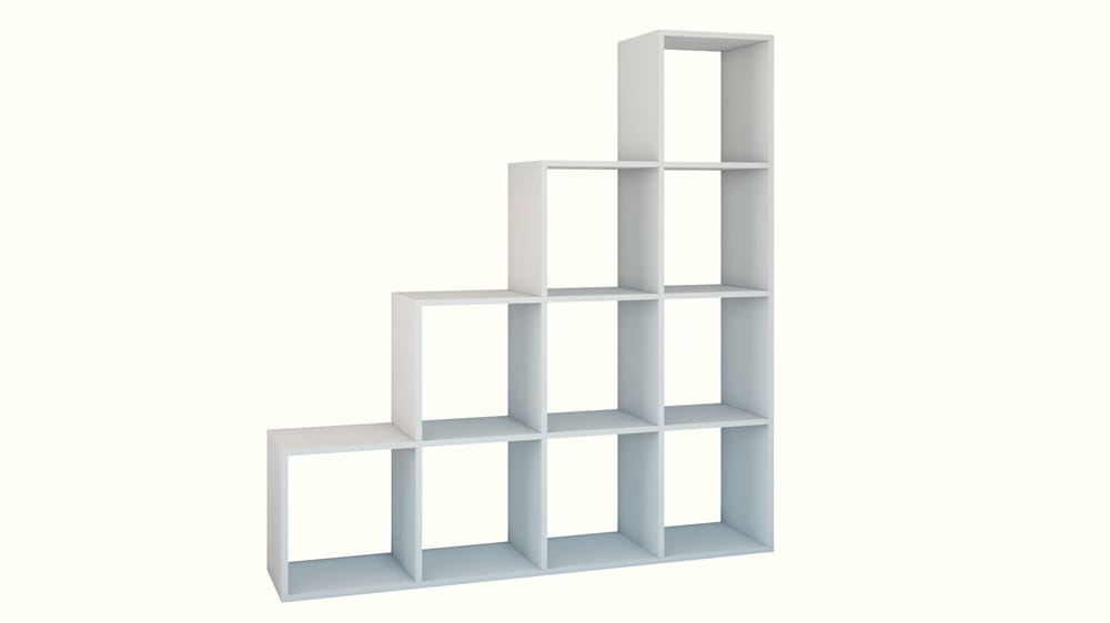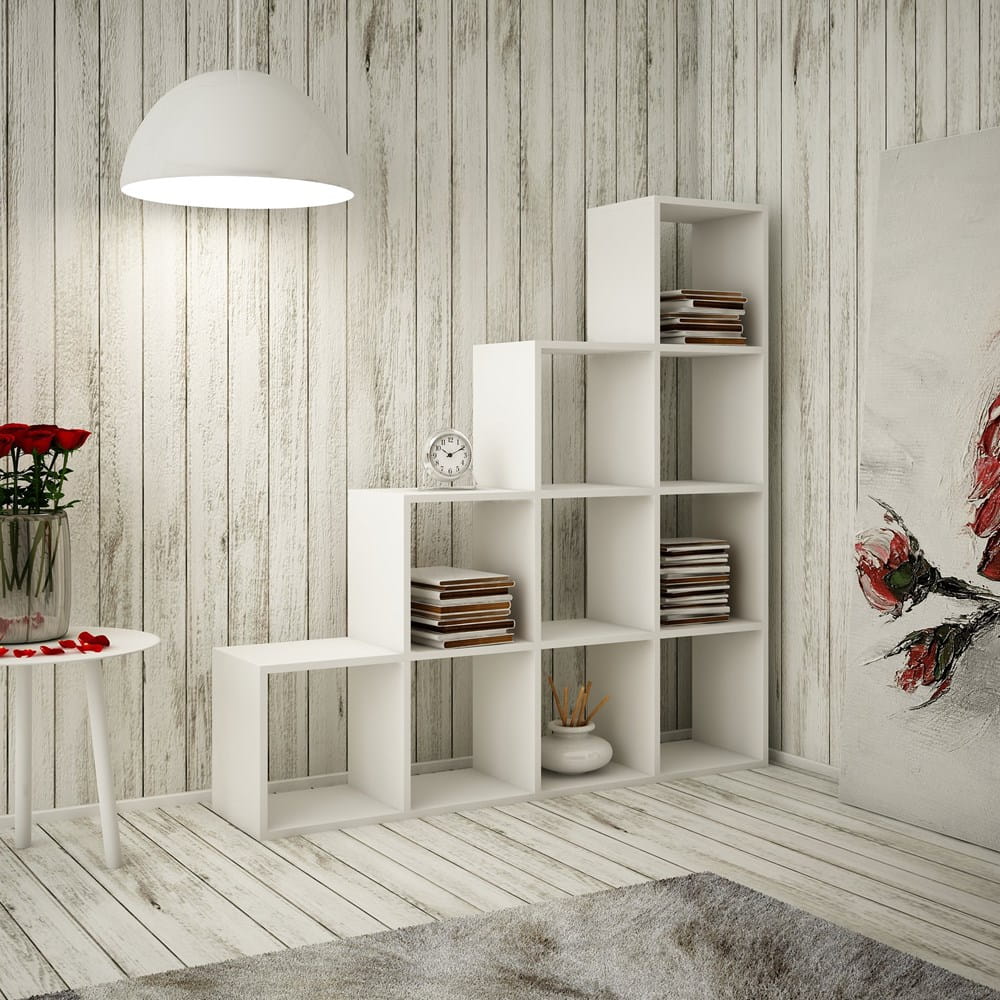 Regał Step 4X4 BIAŁY, schodkowy, 10 okienek, na książki, dokumenty, zabawki
