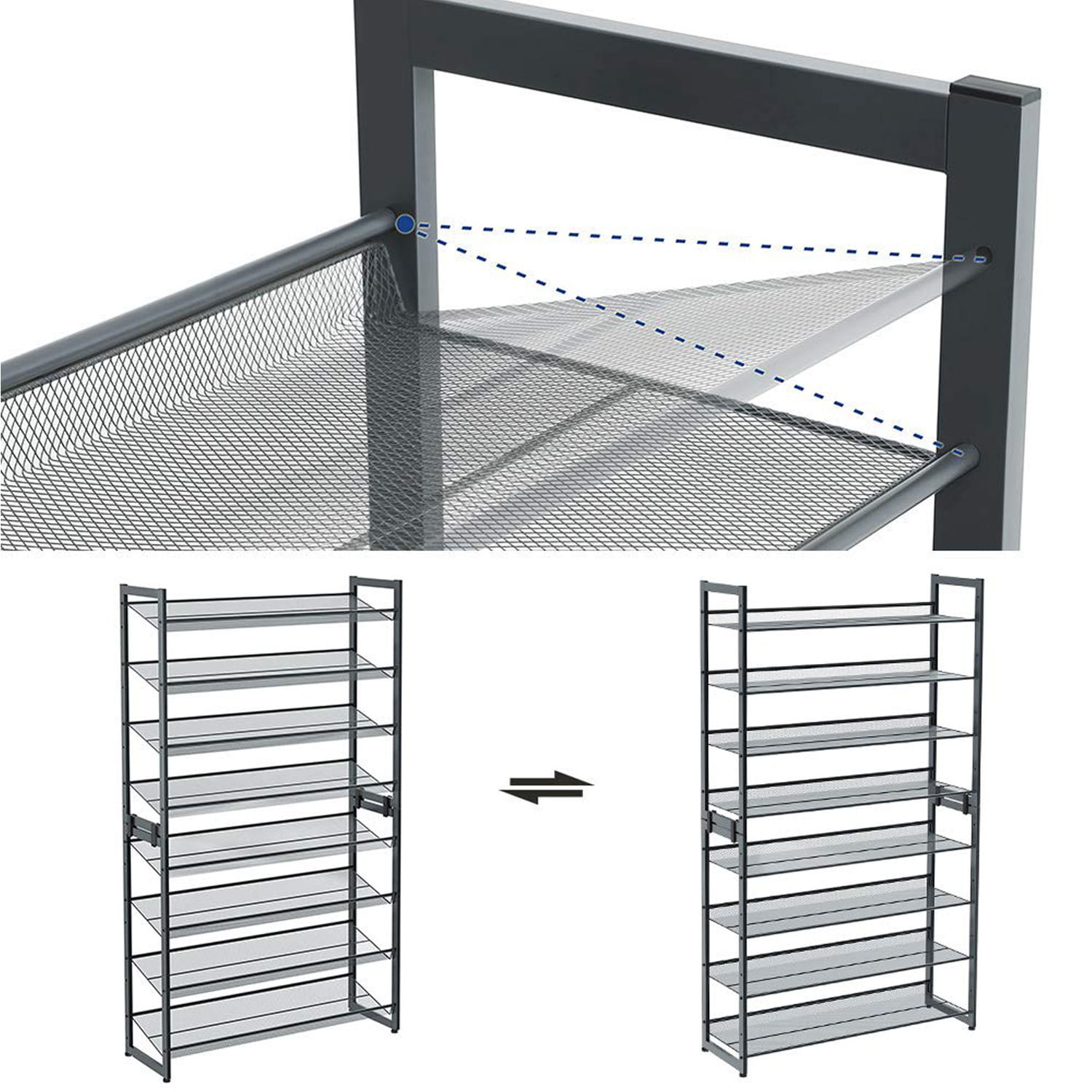 Półki w formie siatek sprawiają, że są one jeszcze bardziej funkcjonalne, gdyż możemy wykorzystać je nie tylko na obuwie dla dorosłych ale również na obuwie dziecięce, nawet te najmniejsze.