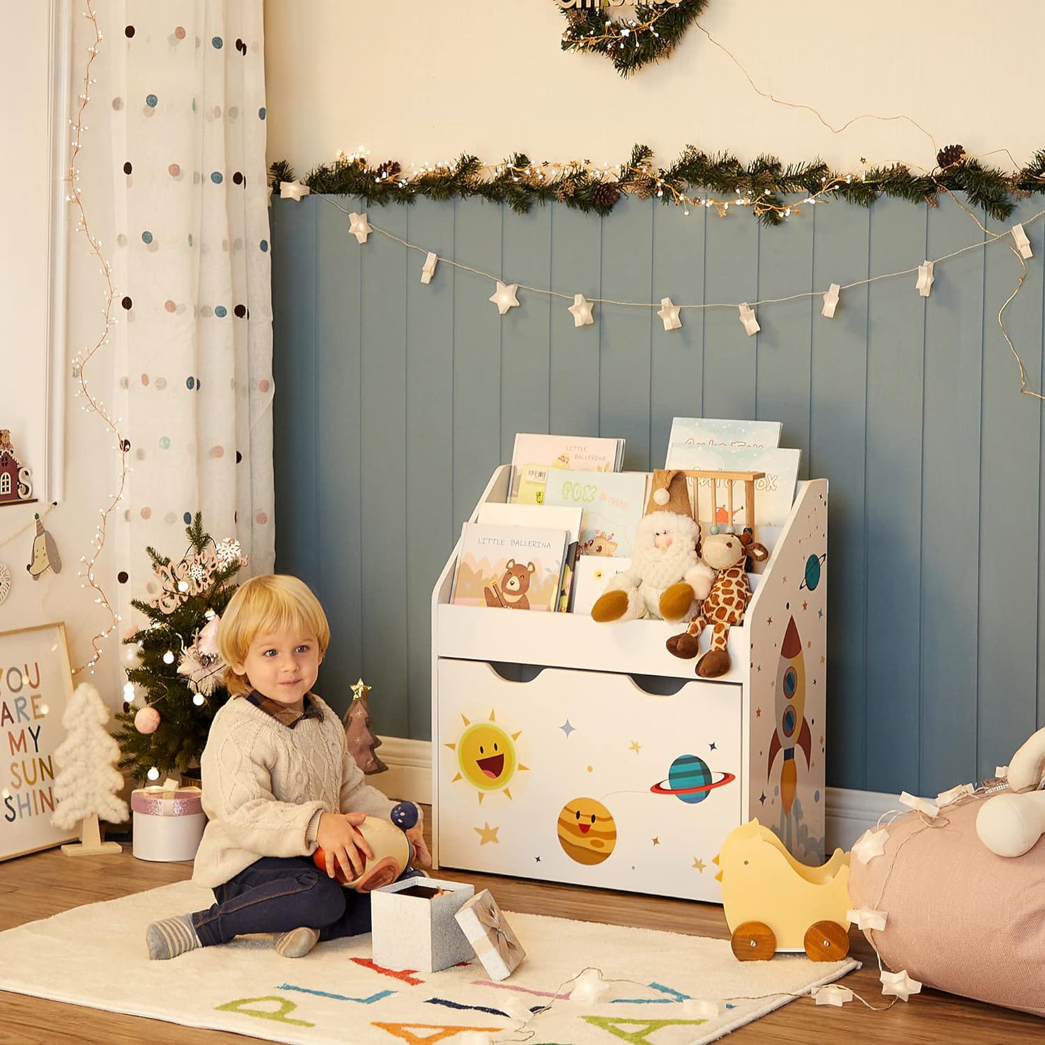 Ciekawy wzór przyciągnie wzrok niejednego dziecka czy rodzica. Odpowiednia wysokość mebla sprawi, że Twoje dziecko bez problemu dosięgnie swoje zabawki czy książki z każdego poziomu.
