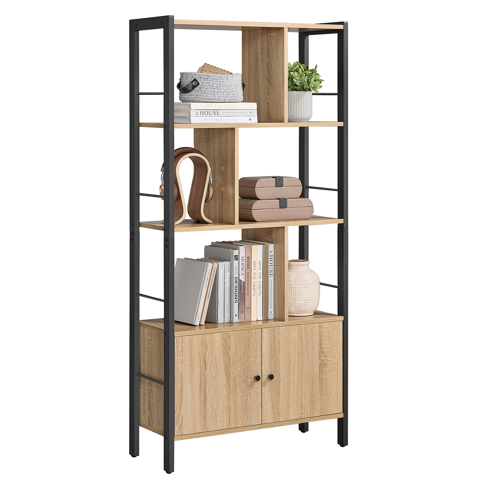 • Regał cechuje się uniwersalnością oraz funkcjonalnością, będzie świetnie pasował do salonu, sypialni, przedpokoju, domowego gabinetu, a 5 półek ułatwi nam dostęp do ulubionych rzeczy.