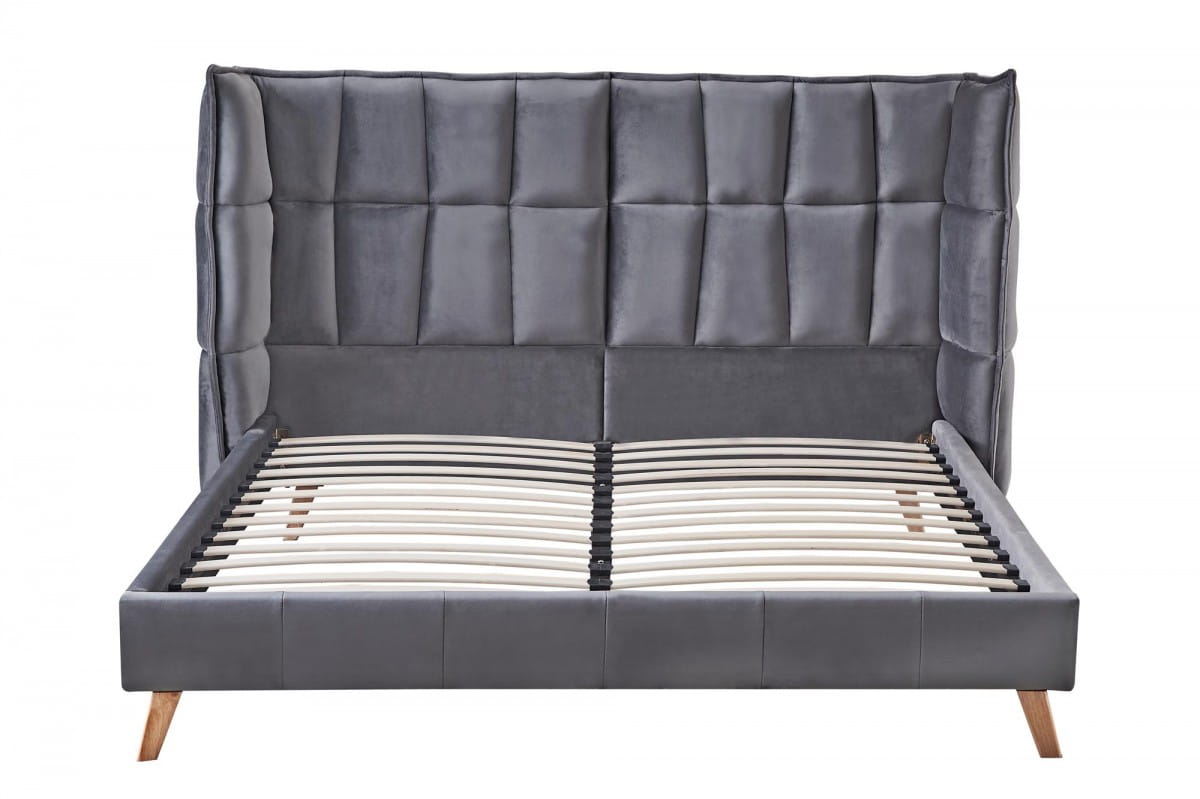 SCANDINO łóżko tapicerowane, popielaty z zagłówkiem, tkanina velvet nóżki