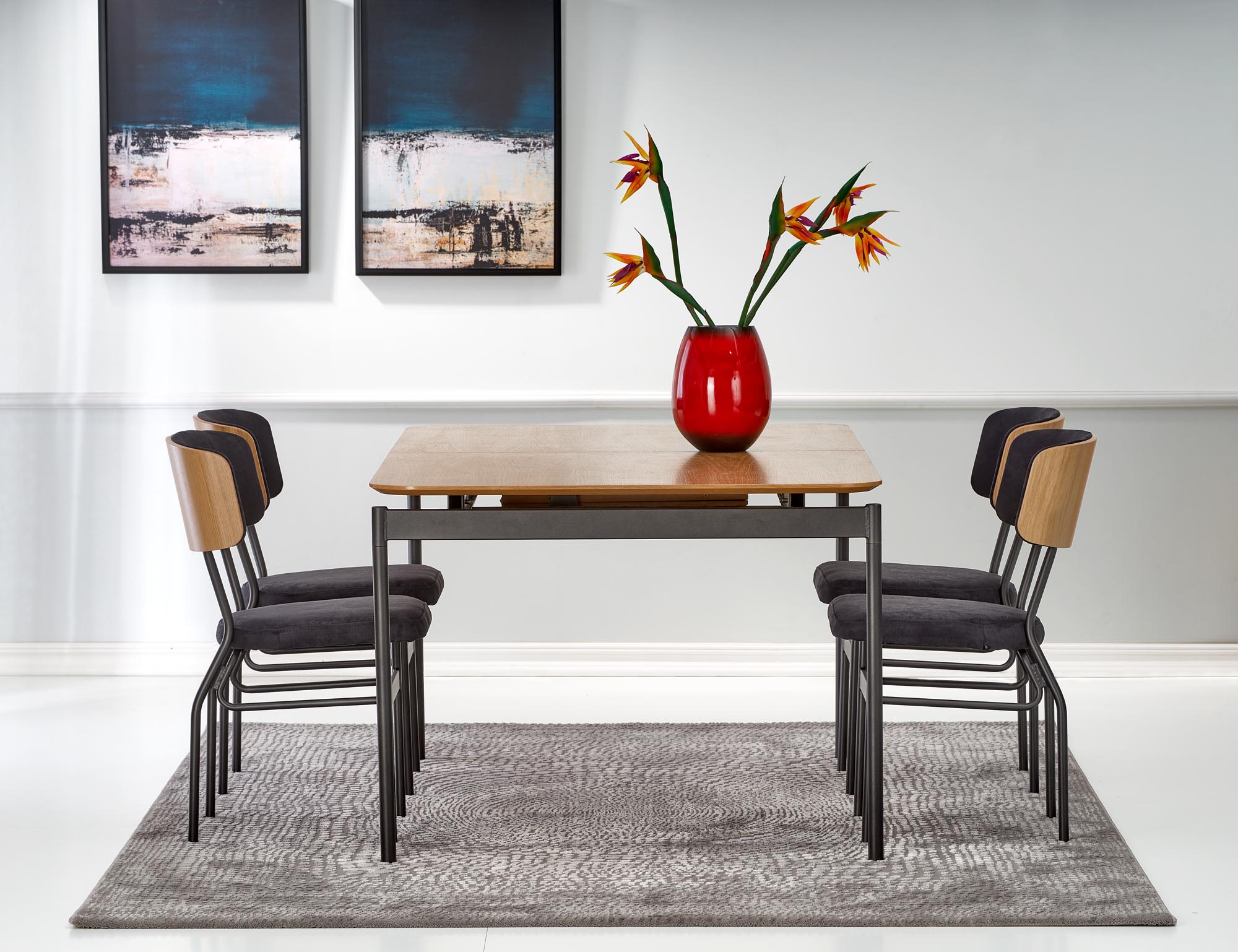 Stół SMART został wykonany z wysokiej jakości MDF-u i okleiny naturalnej dębowej, co nadaje mu elegancki wygląd i trwałość. W połączeniu z malowaną proszkowo stalą w kolorze czarnym, stół ten prezentuje się wyjątkowo stylowo i nowocześnie. Jego uniwersalne kolory dębu naturalnego i czarnego pasują do różnych aranżacji wnętrz.