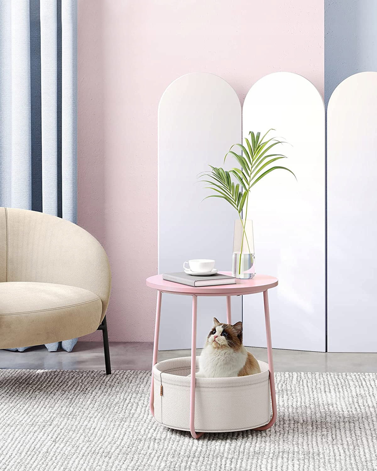 STOLIK KAWOWY OKRĄGŁY, STOLIK BOCZNY NOCNY, RÓŻOWY