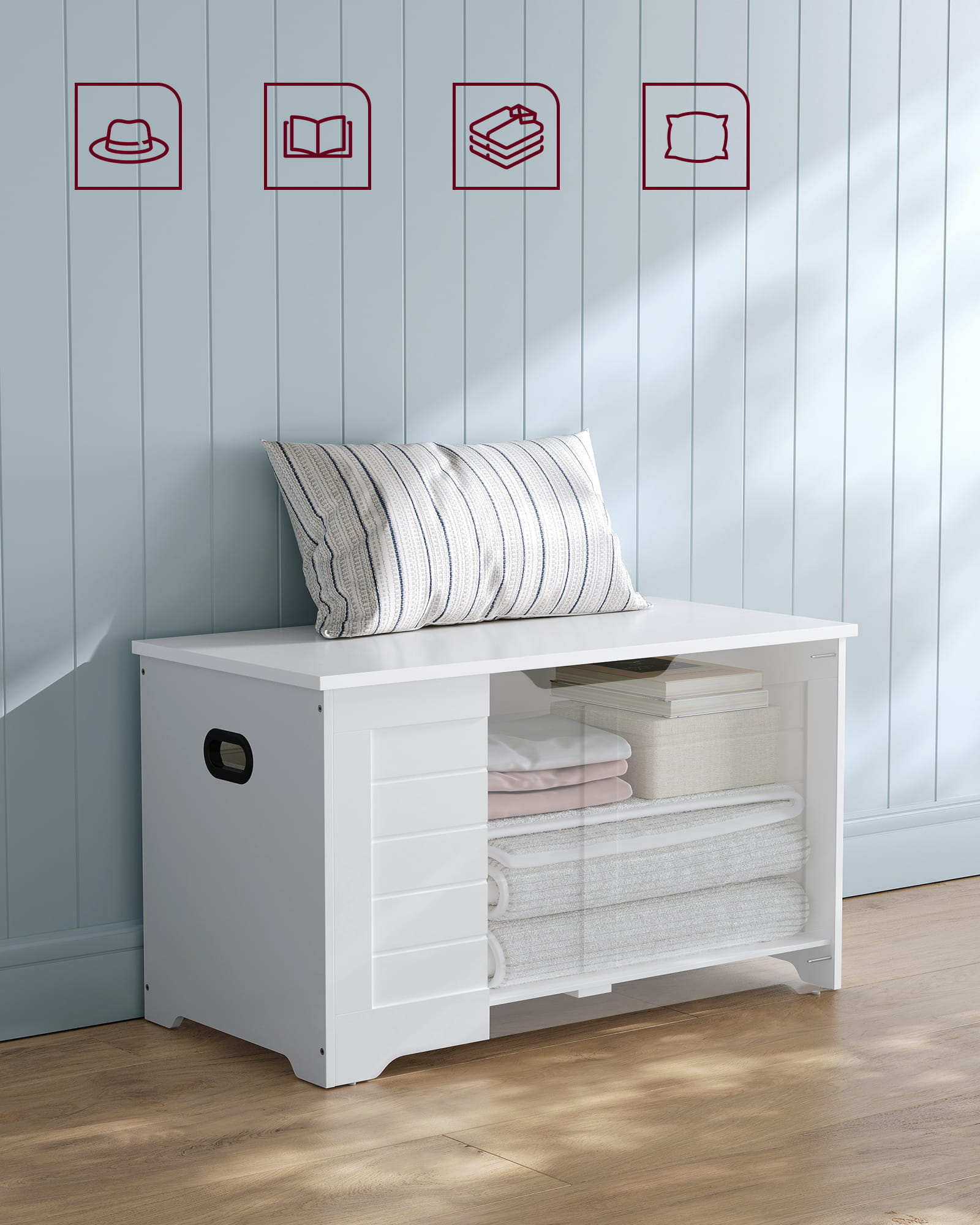 Biała skrzynia do przechowywania to bardzo praktyczny i elegancki mebel, który znajdzie swoje zastosowanie w przedpokoju, korytarzu, sypialni czy pokoju dziecięcym.