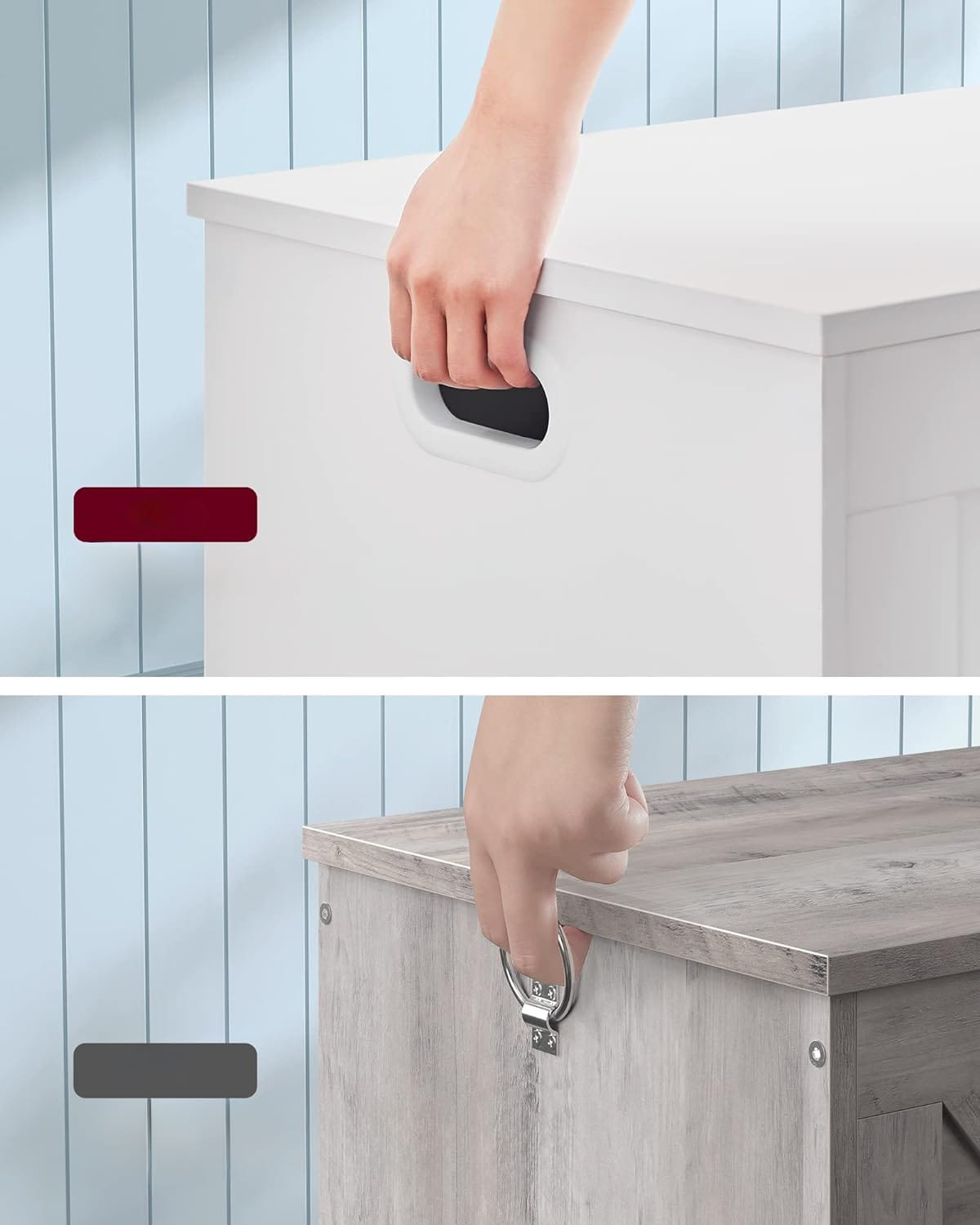 Po bokach skrzyni znajdują się wygodne uchwyty, które ułatwiają jej przenoszenie.