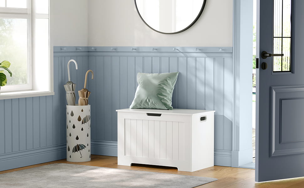 Biała skrzynia do przechowywania to bardzo praktyczny i elegancki mebel, który znajdzie swoje zastosowanie w przedpokoju, korytarzu, sypialni czy pokoju dziecięcym.
