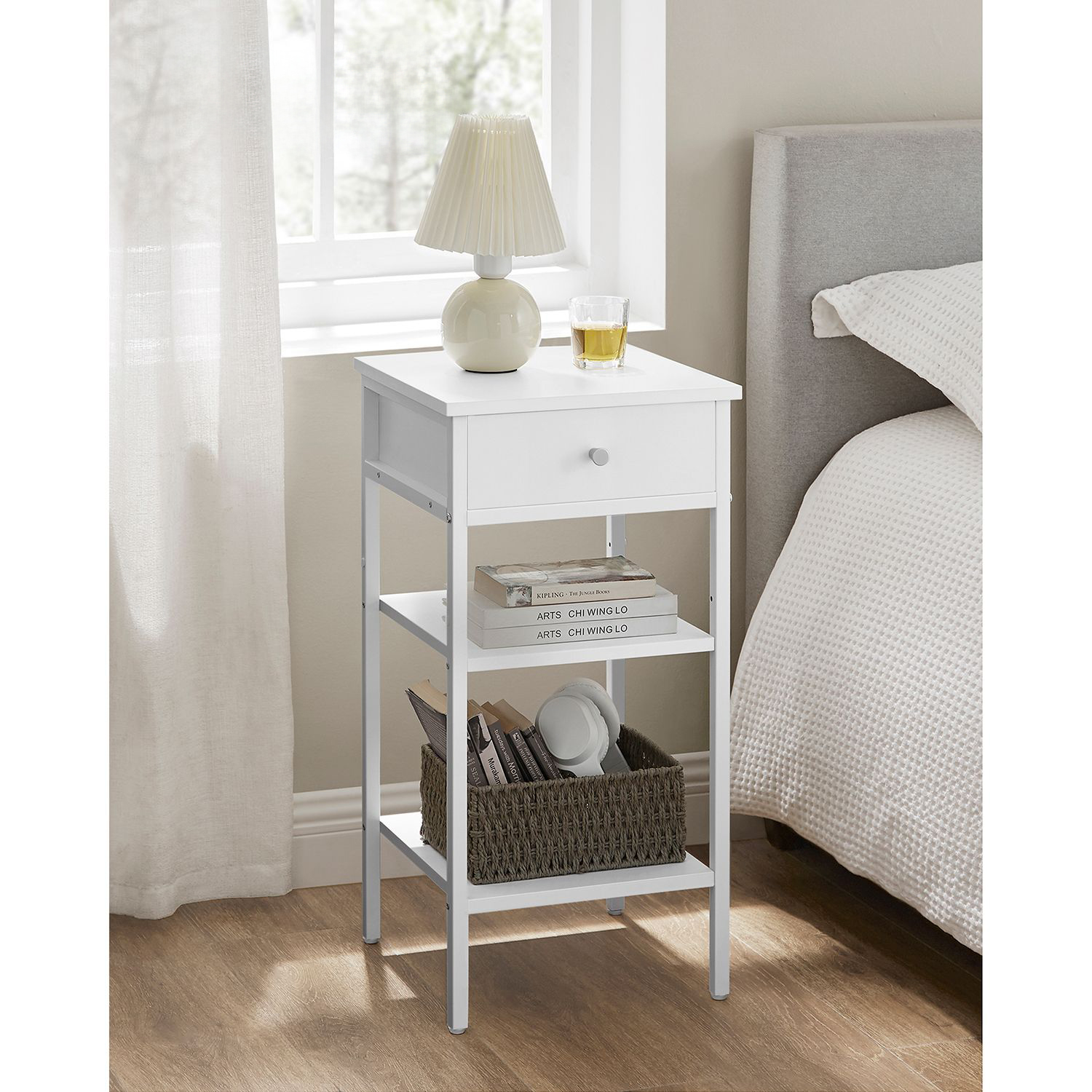 - To nie tylko stolik nocny – to wielozadaniowy organizer, który zadba o porządek przy łóżku i doda wnętrzu charakteru.