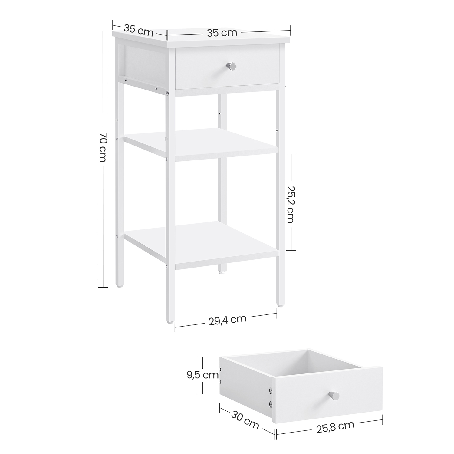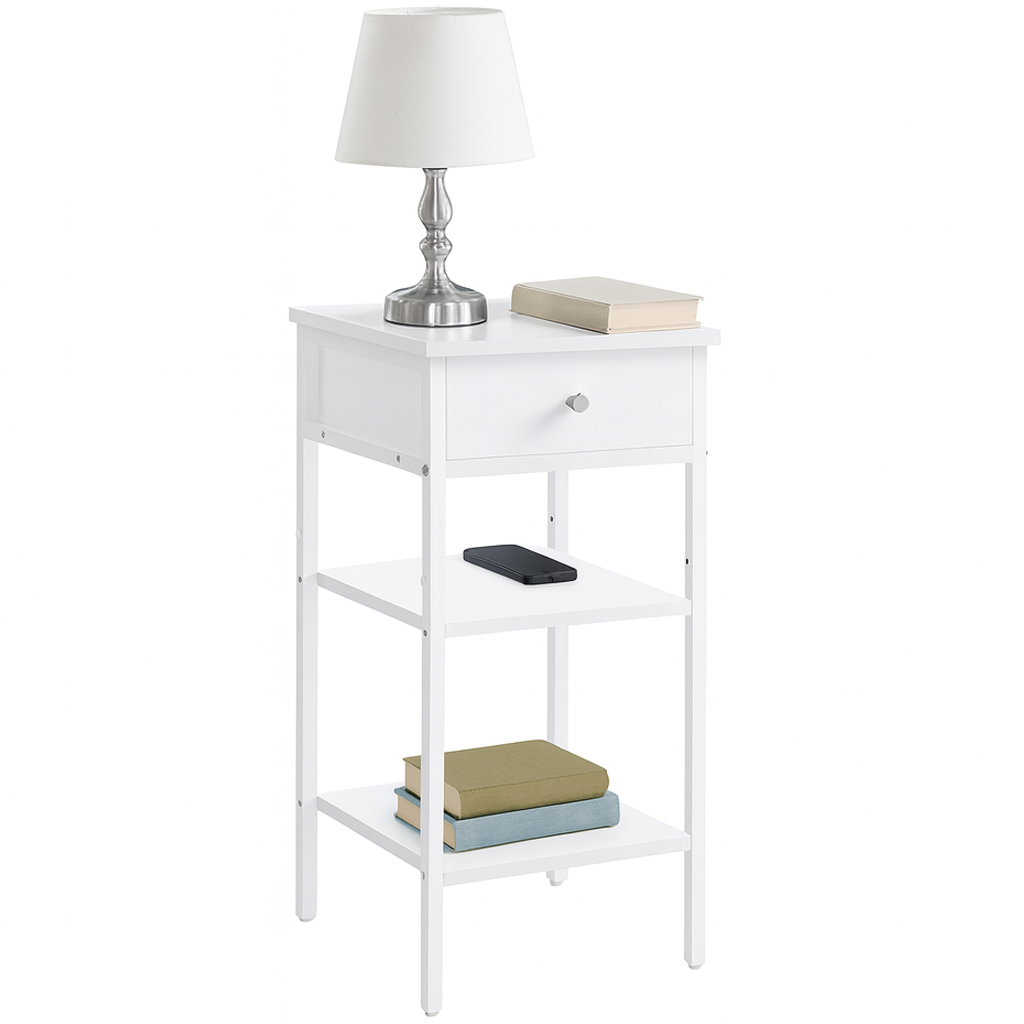 SZAFKA NOCNA Z SZUFLADĄ NOWOCZESNY STOLIK Z PÓŁKAMI - BIAŁA