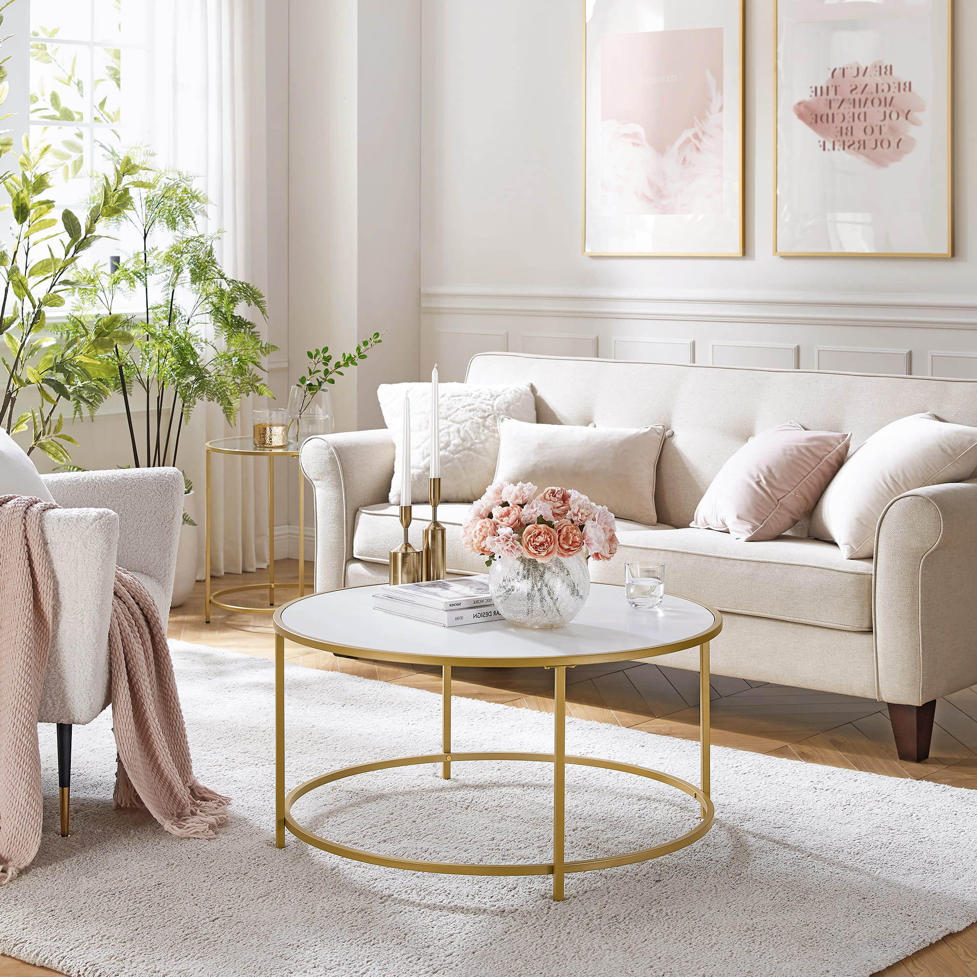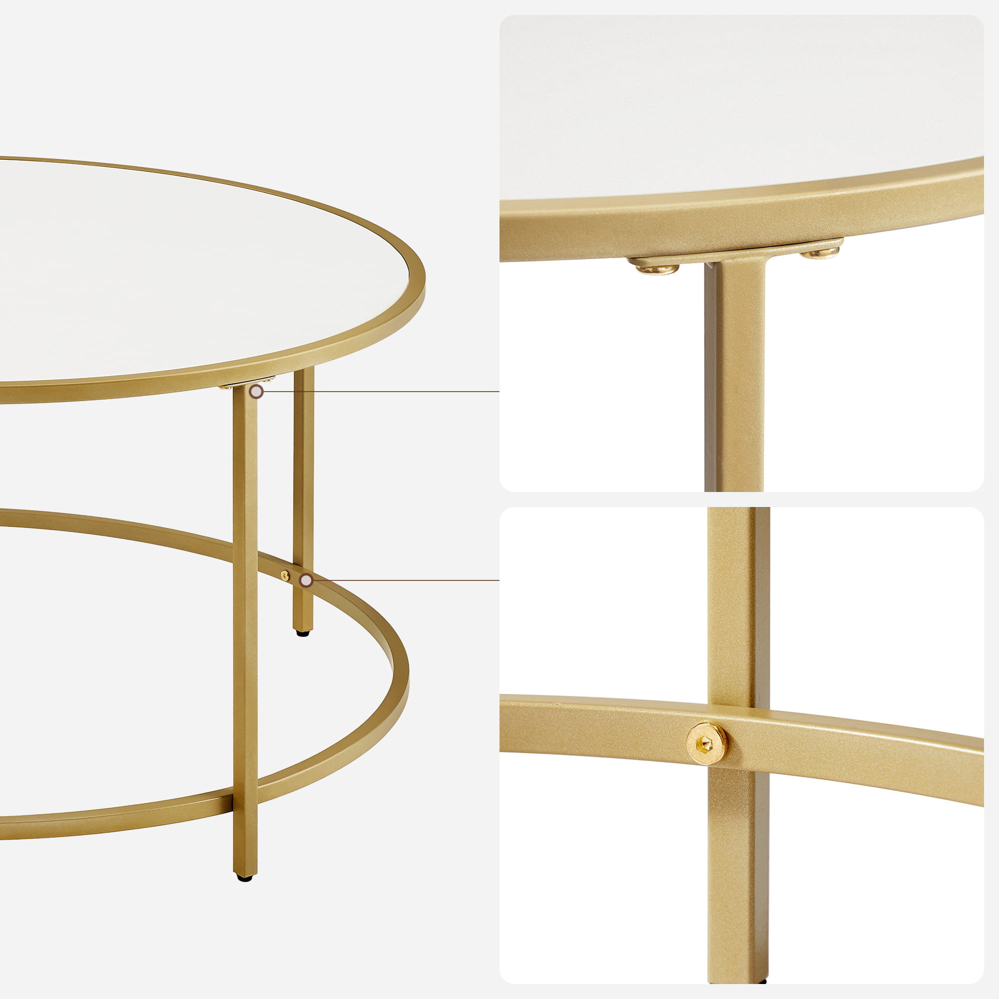 STOLIK KAWOWY OKRĄGŁY, ZŁOTY, BIAŁY