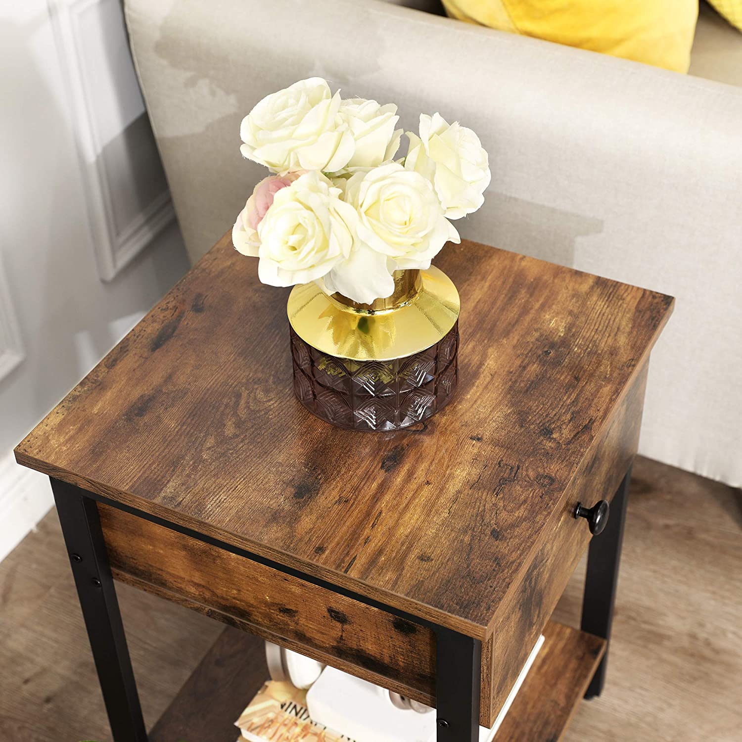 Szafka wykonana w stylu rustykalnym, czyli odpowiednio stylizowanym na wiekowy. Szafka jest stabilna, a więc możemy umieścić ją obok łóżka trzymając na niej wszystkie rzeczy, które chcemy mieć pod ręką, a to wszystko dzięki temu, że szafka posiada również dolną półkę. Szafka nocna będzie idealna do przechowywania książek, budzików, kwiatów w doniczce, możemy też na niej wyeksponować nasze pięknie oprawione zdjęcia.