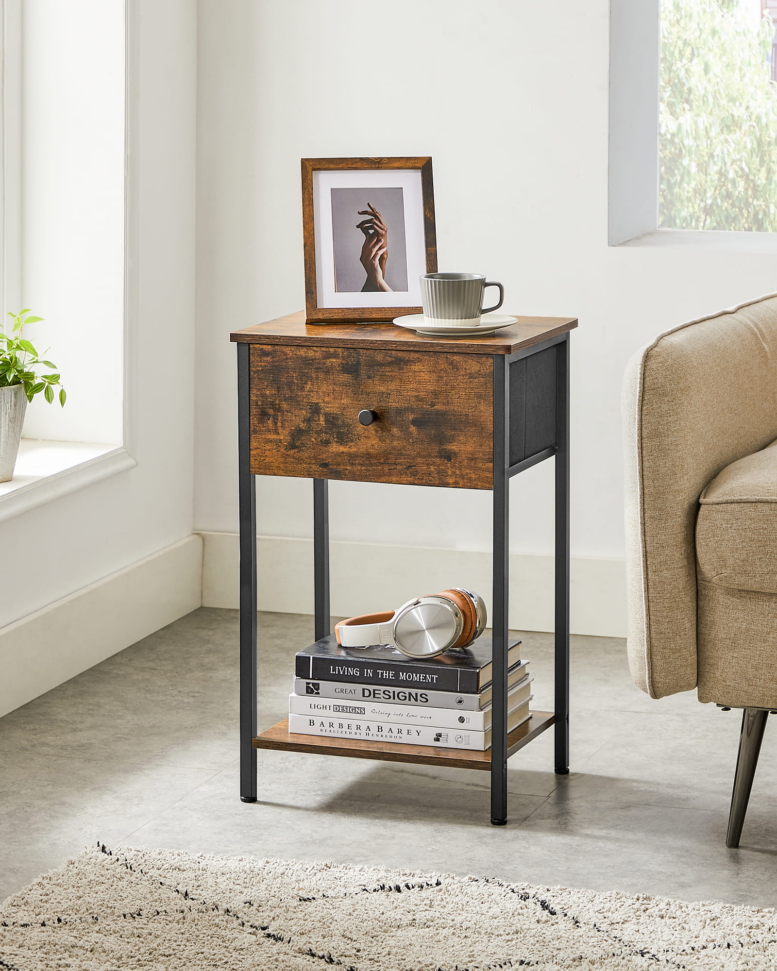 Dodatkowym atutem szafki nocnej jest oczywiście szuflada, w której możemy przechowywać słuchawki, ładowarkę do telefonu, notatki, a nawet lekarstwa o ile do pomieszczenia nie mają dostępu dzieci.