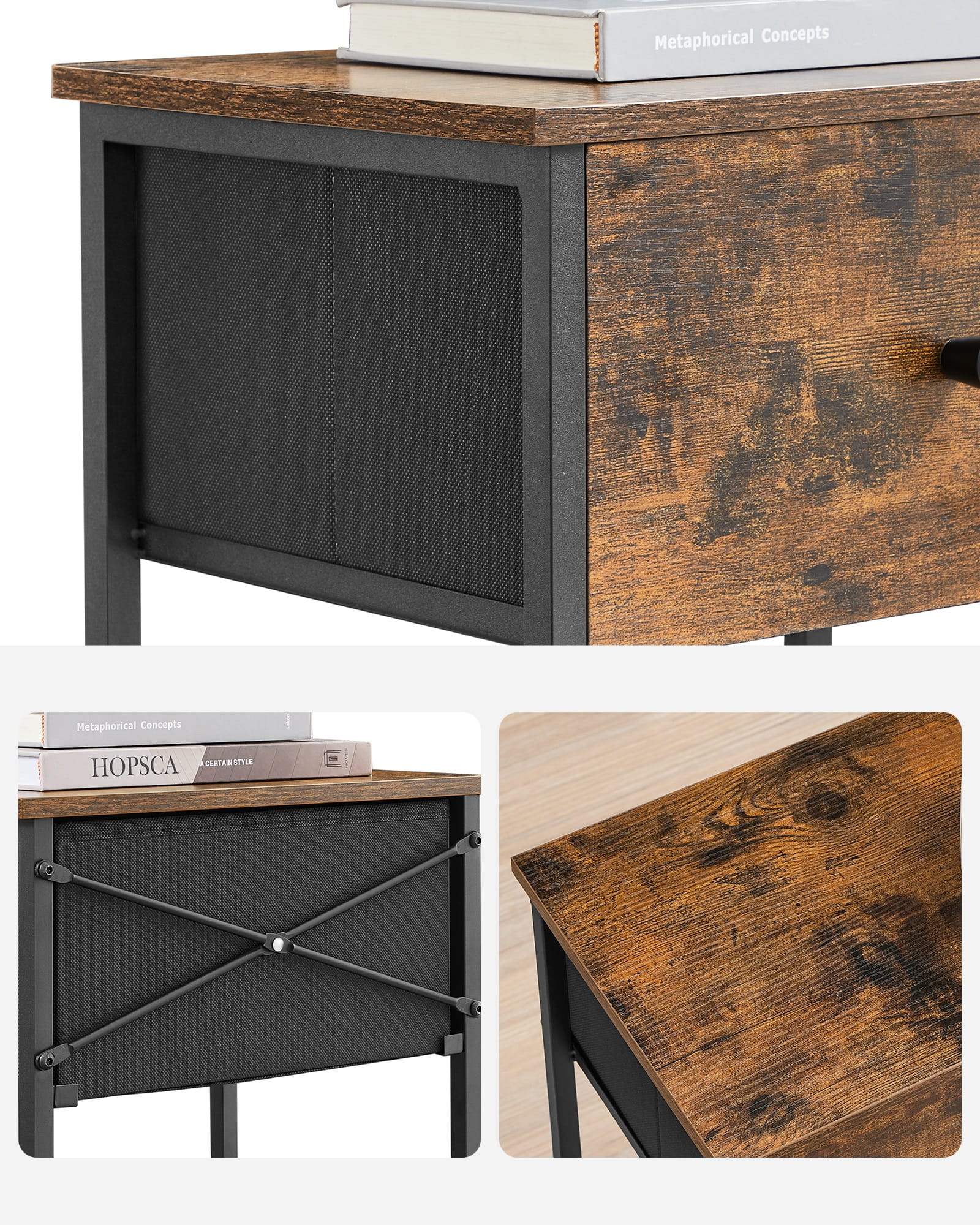 Stolik Szafka - nocna, dąb rustykalny, drewno ciemne, szuflada LGS021B01