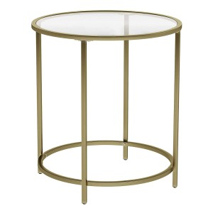 Stolik wykonany ze szkła i żelaza malowanego proszkowo na kolor złoty. Produkt tworzy niesamowitą dekorację Twojego salonu czy pokoju dziennego.