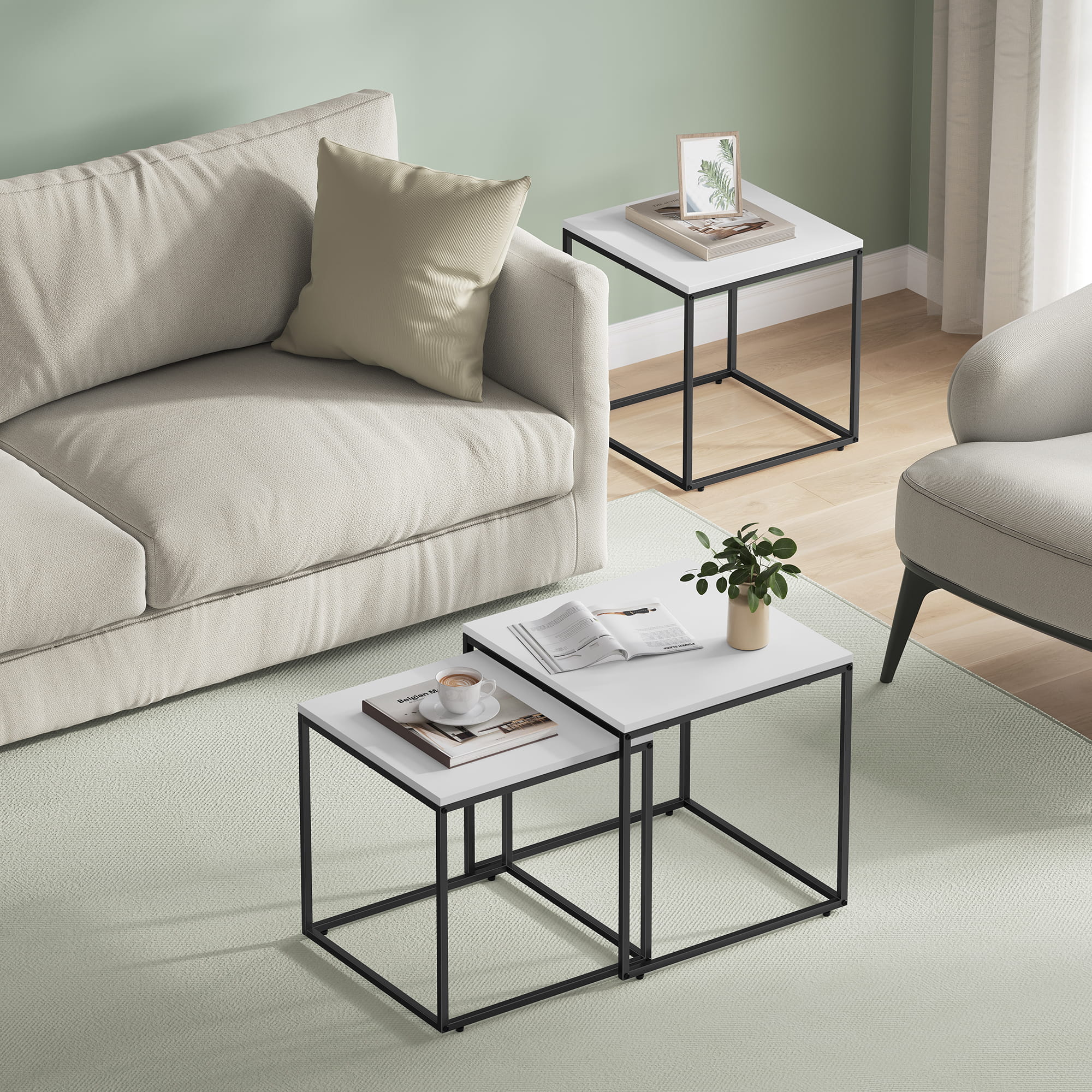 Stolik kawowy kwadrat 2szt, biały / nogi czarne, zestaw 50/50,5 45/45,5