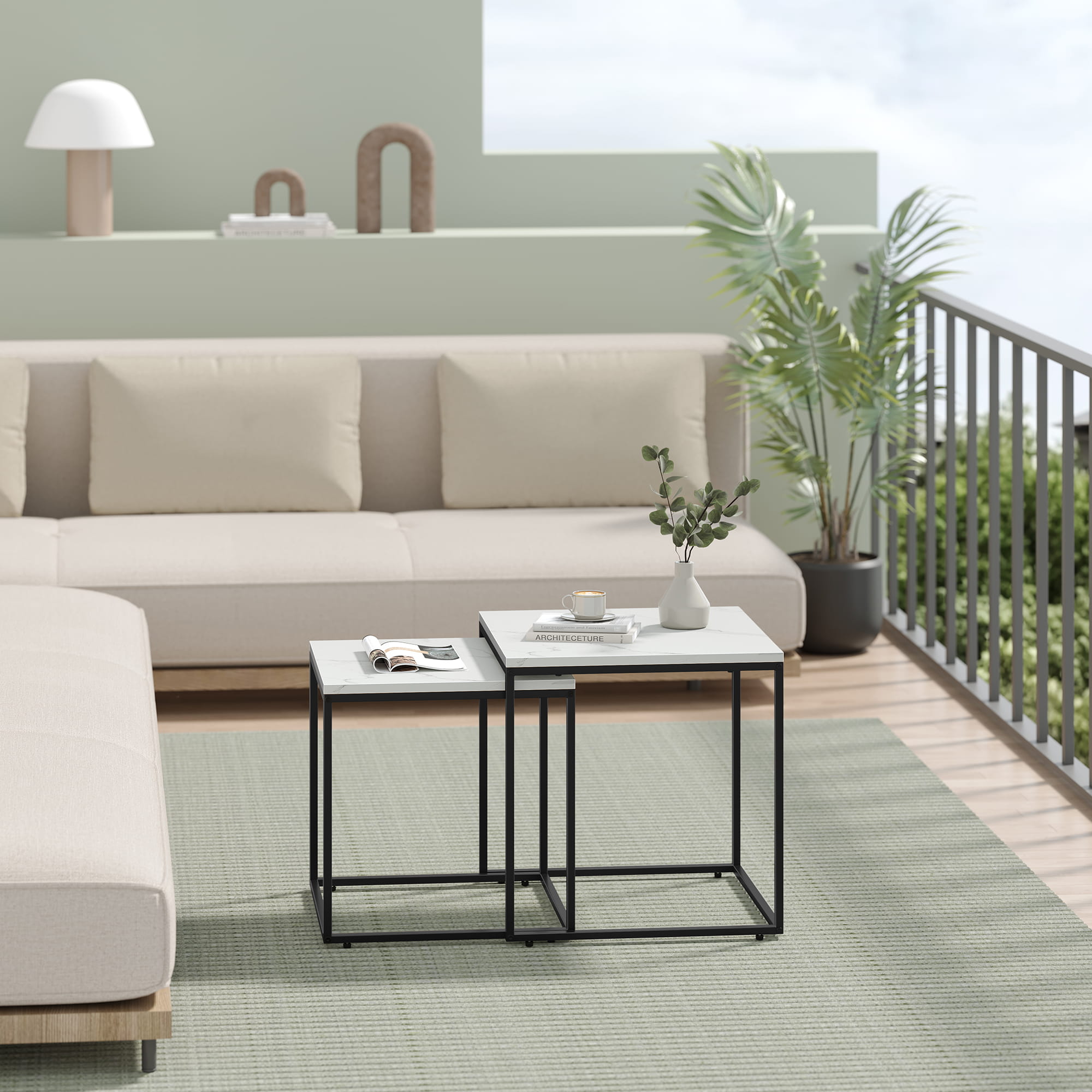 Kod produktu: Stolik kawowy kwadrat 2szt - marmur / nogi czarne