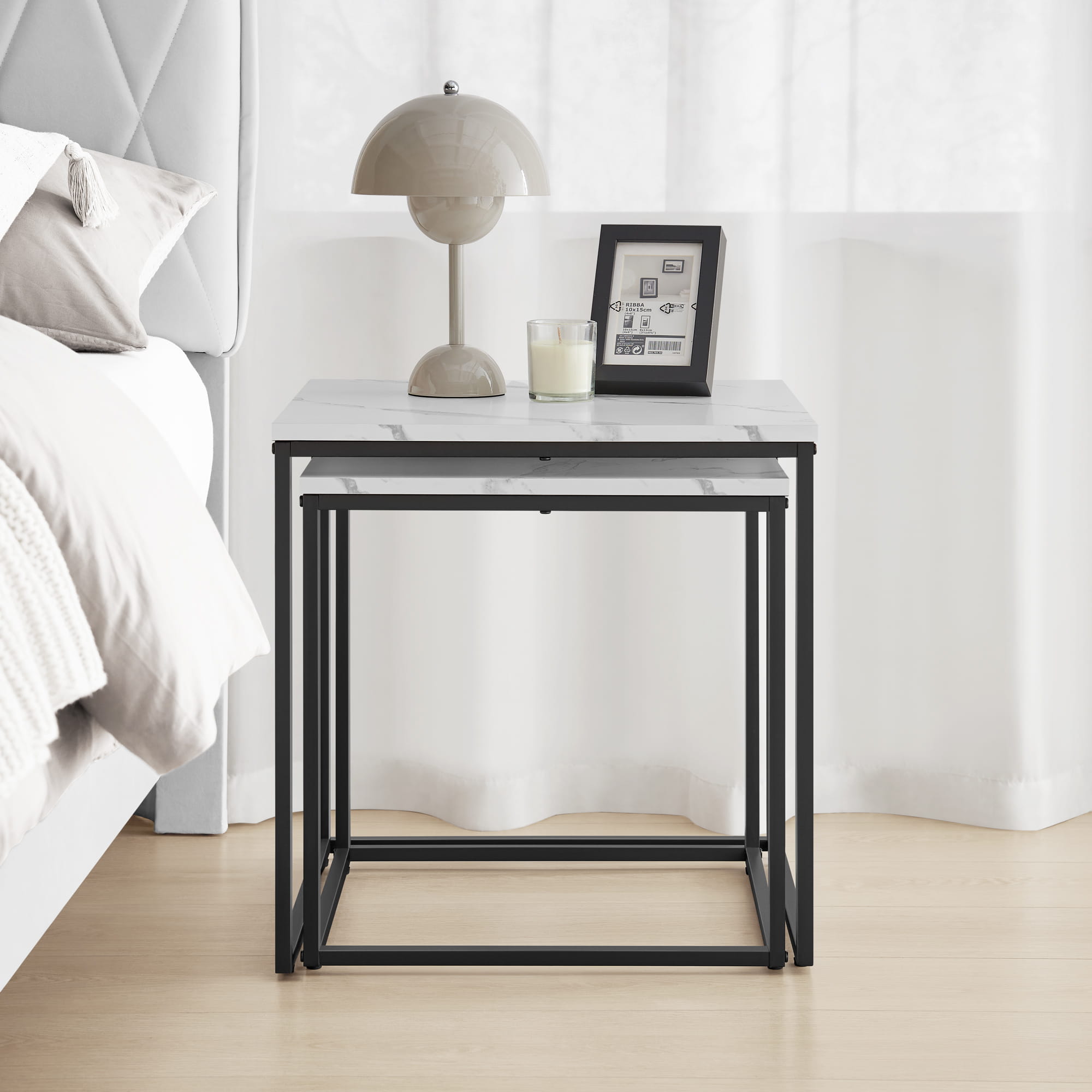 Stolik kawowy kwadrat 2szt - marmur / nogi czarne, zestaw 50/50,5 45/45,5