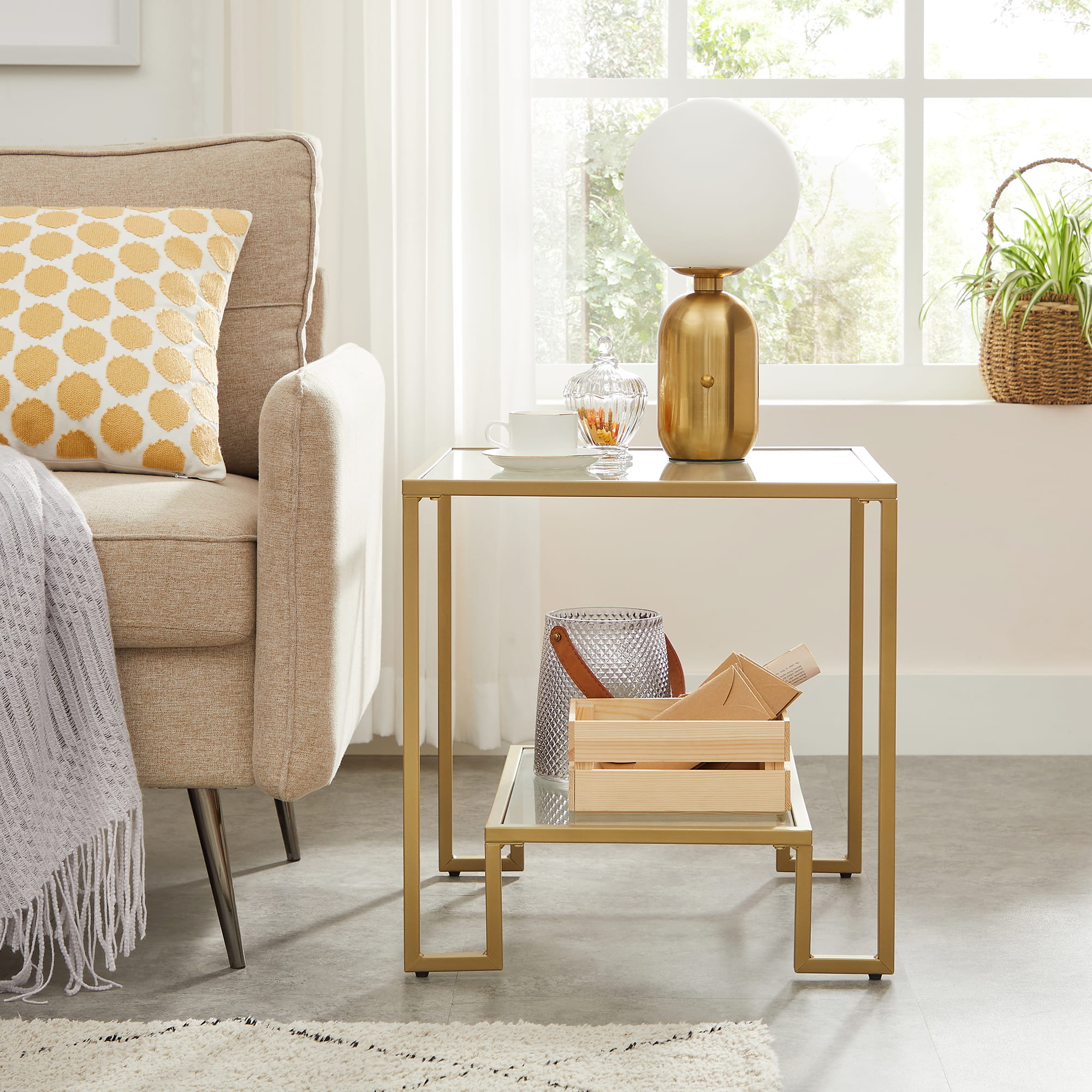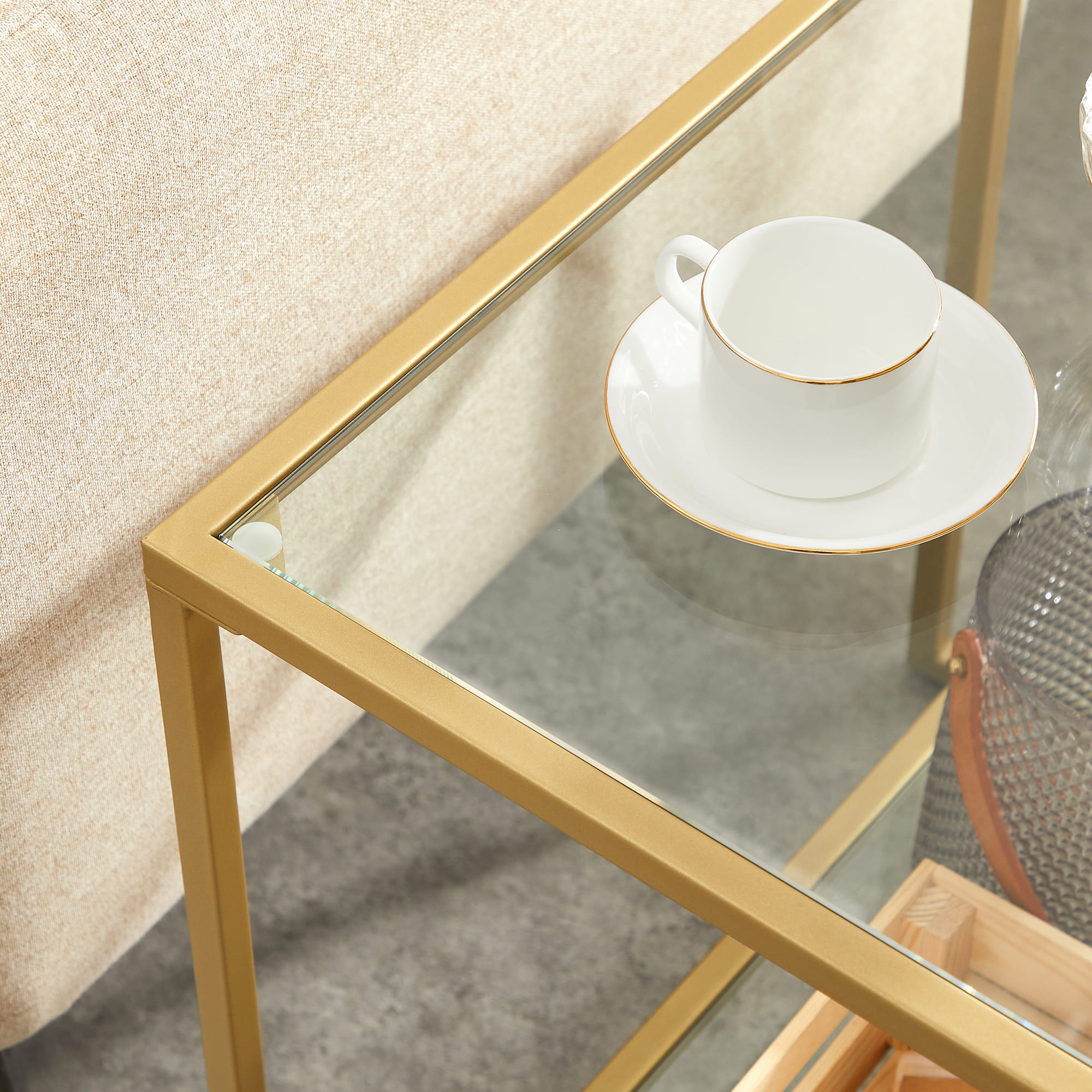 Stolik - złoty, szkło stolik boczny, ława