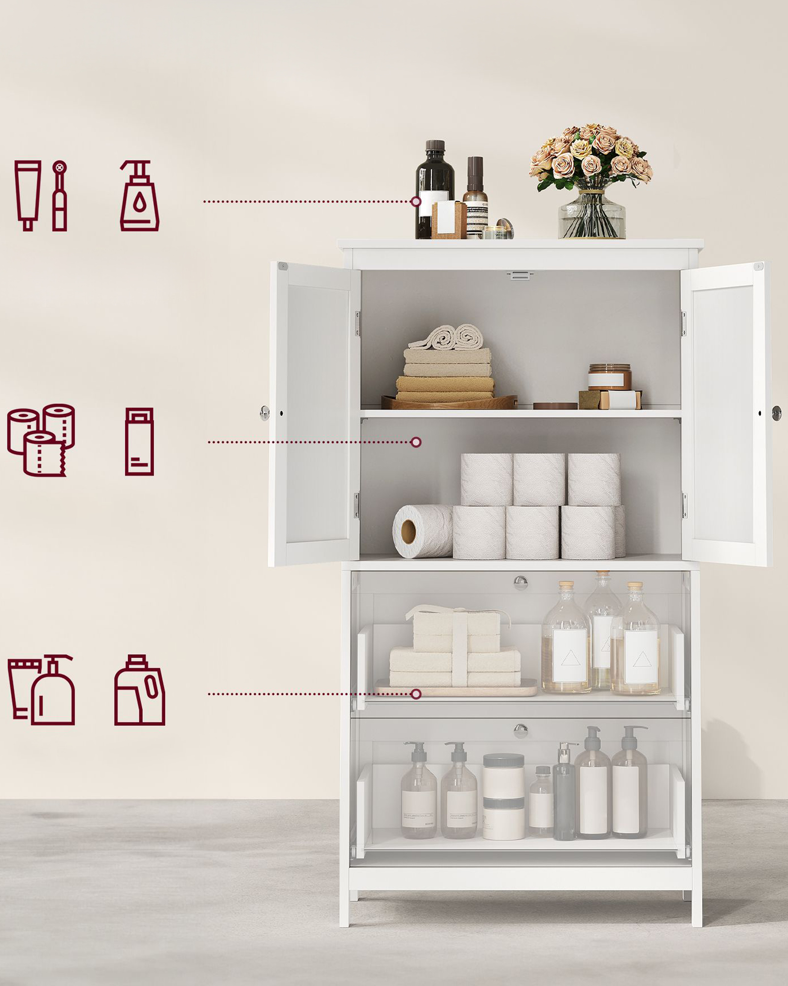 W zamkniętych przestrzeniach możesz trzymać rzeczy, których nie chcesz mieć na widoku jak np. zapas papieru toaletowego.