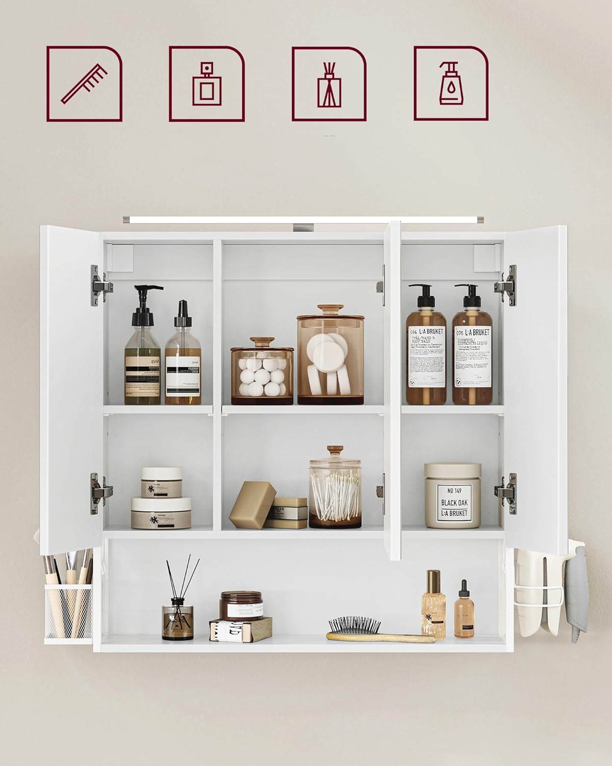 Szafka Łazienkowa z Lustrem Wisząca, z oświetleniem, Biała- BBK124W14