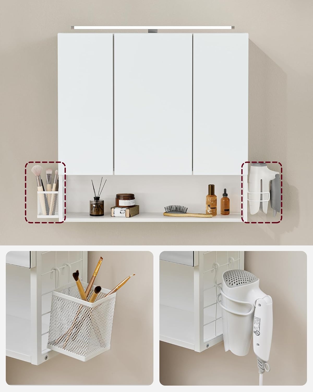 Nowoczesna Szafka Wisząca z Lustrem i Lampą LED - Biała