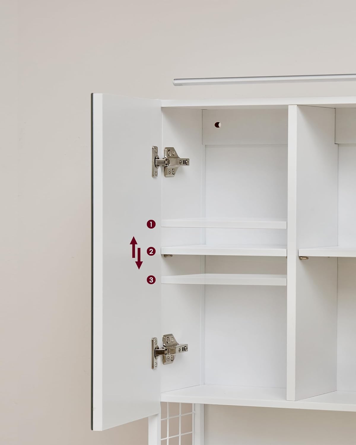 - Wszelkich regulacji drzwiczek z lustrami dokonujemy na zawiasach
