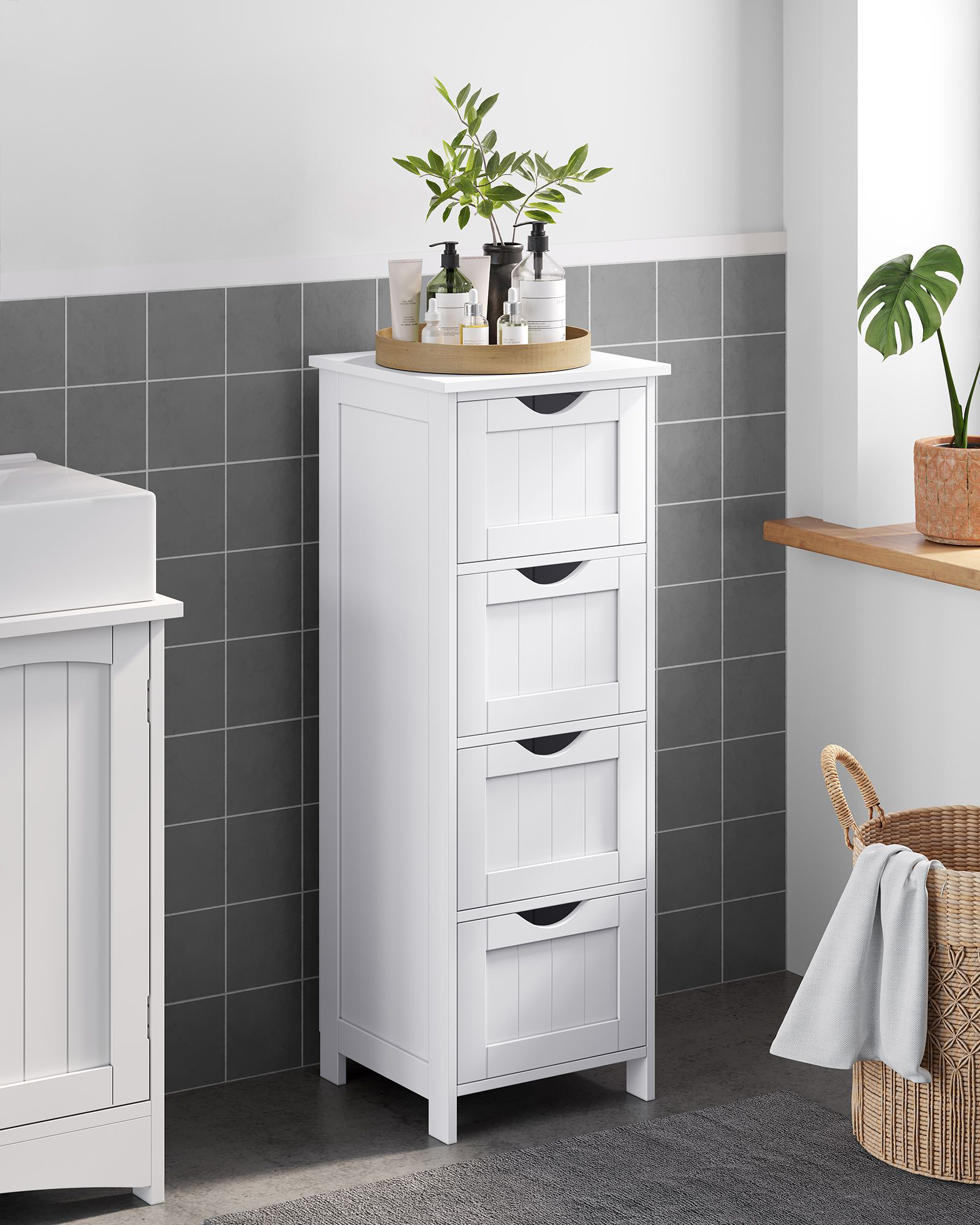 ☑️ Szukasz praktycznego i stylowego mebla, który pomoże Ci uporządkować przestrzeń w łazience? Ta biała szafka łazienkowa z czterema pojemnymi szufladami to idealne rozwiązanie do małych i dużych łazienek.