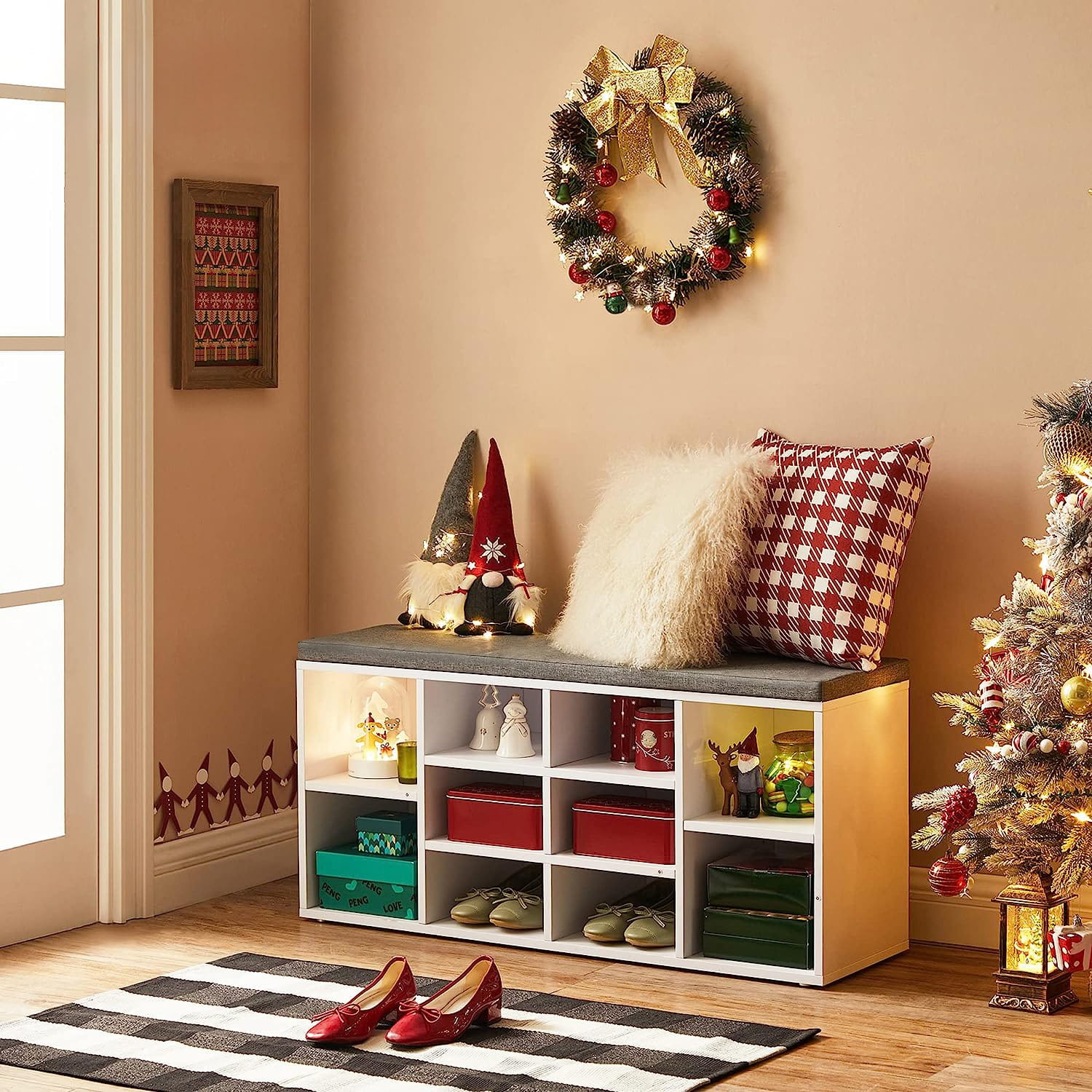 SZAFKA, REGAŁ NA BUTY Z MIĘKKIM SIEDZISKIEM, BIAŁA