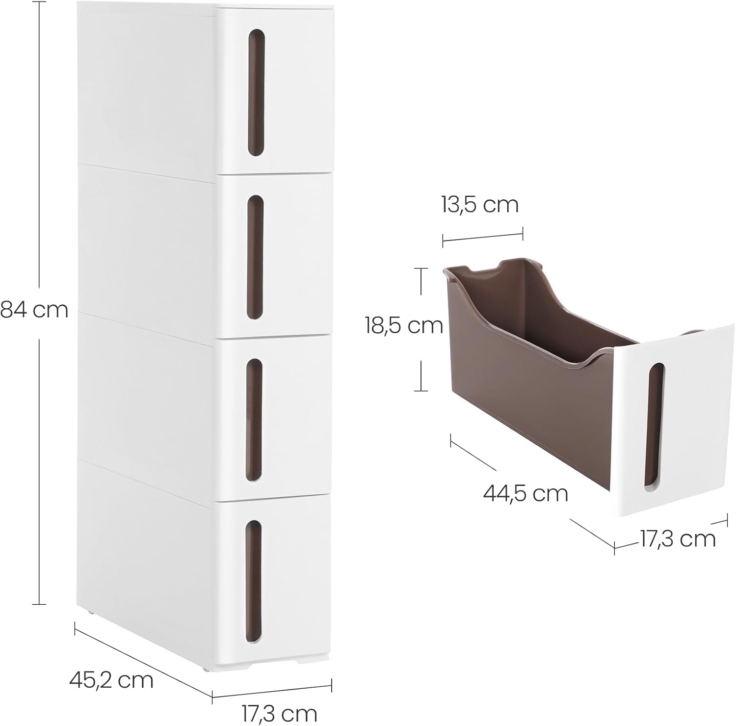 ☑️ Wymiary: 17,3 x 45,2 x 84 cm (szerokość x głębokość x wysokość)