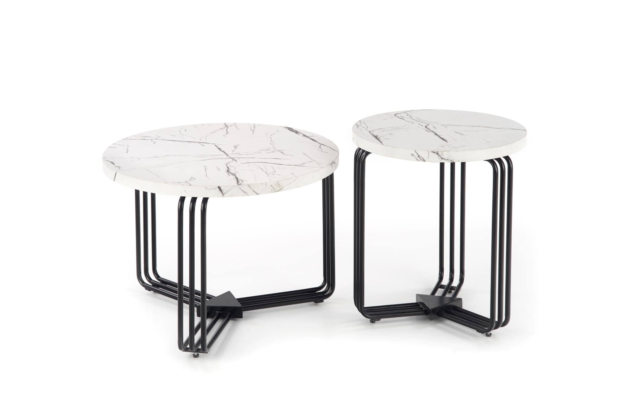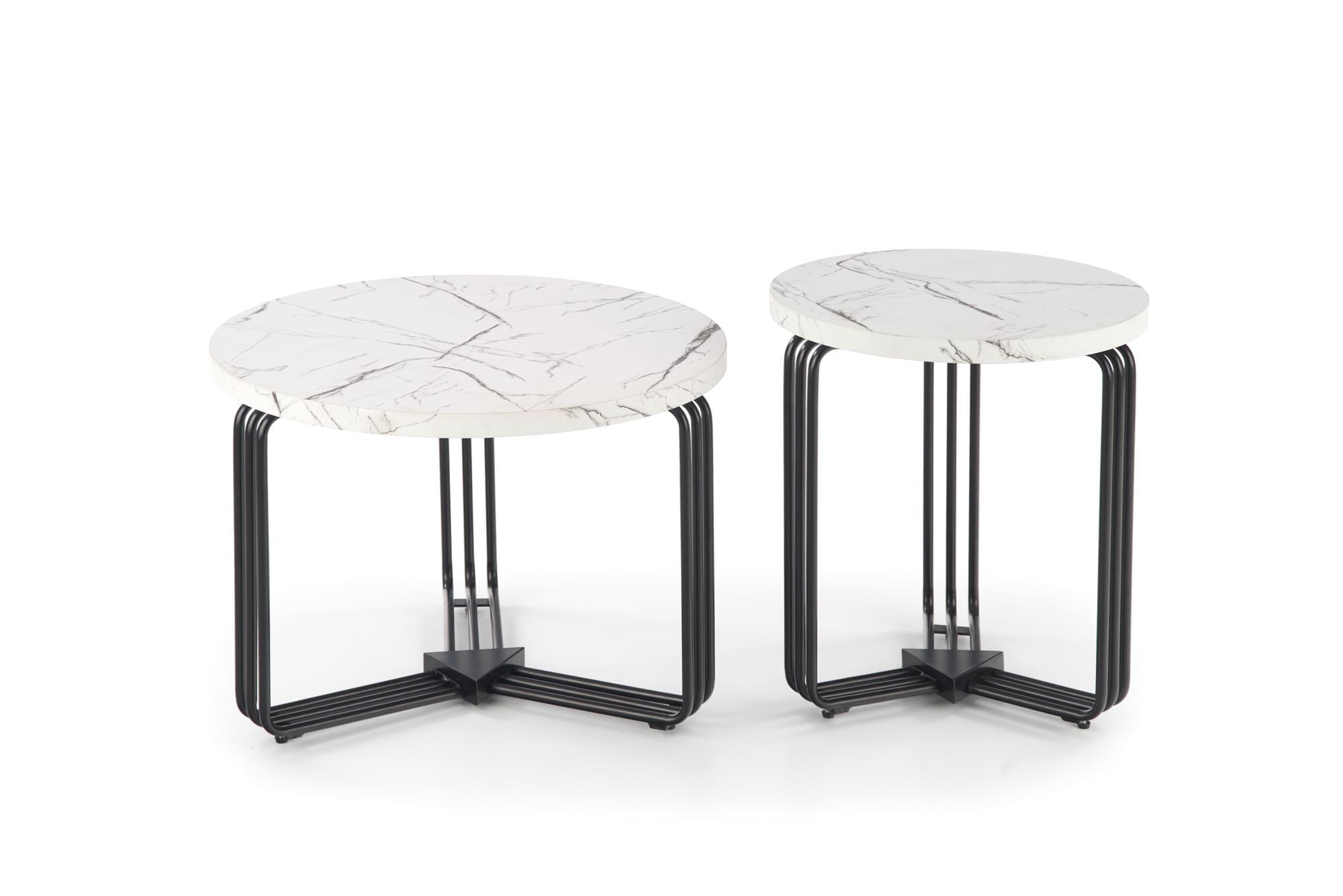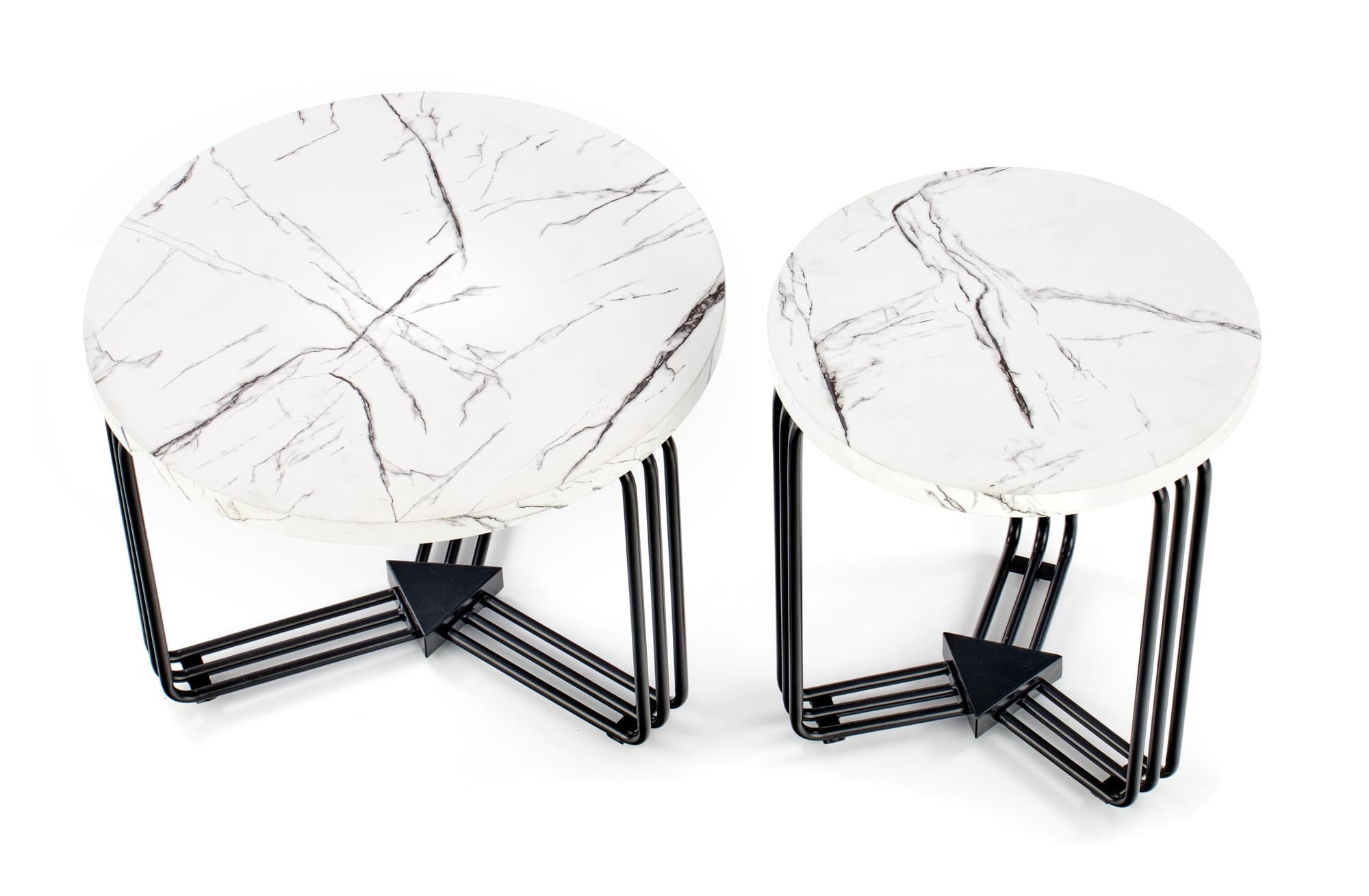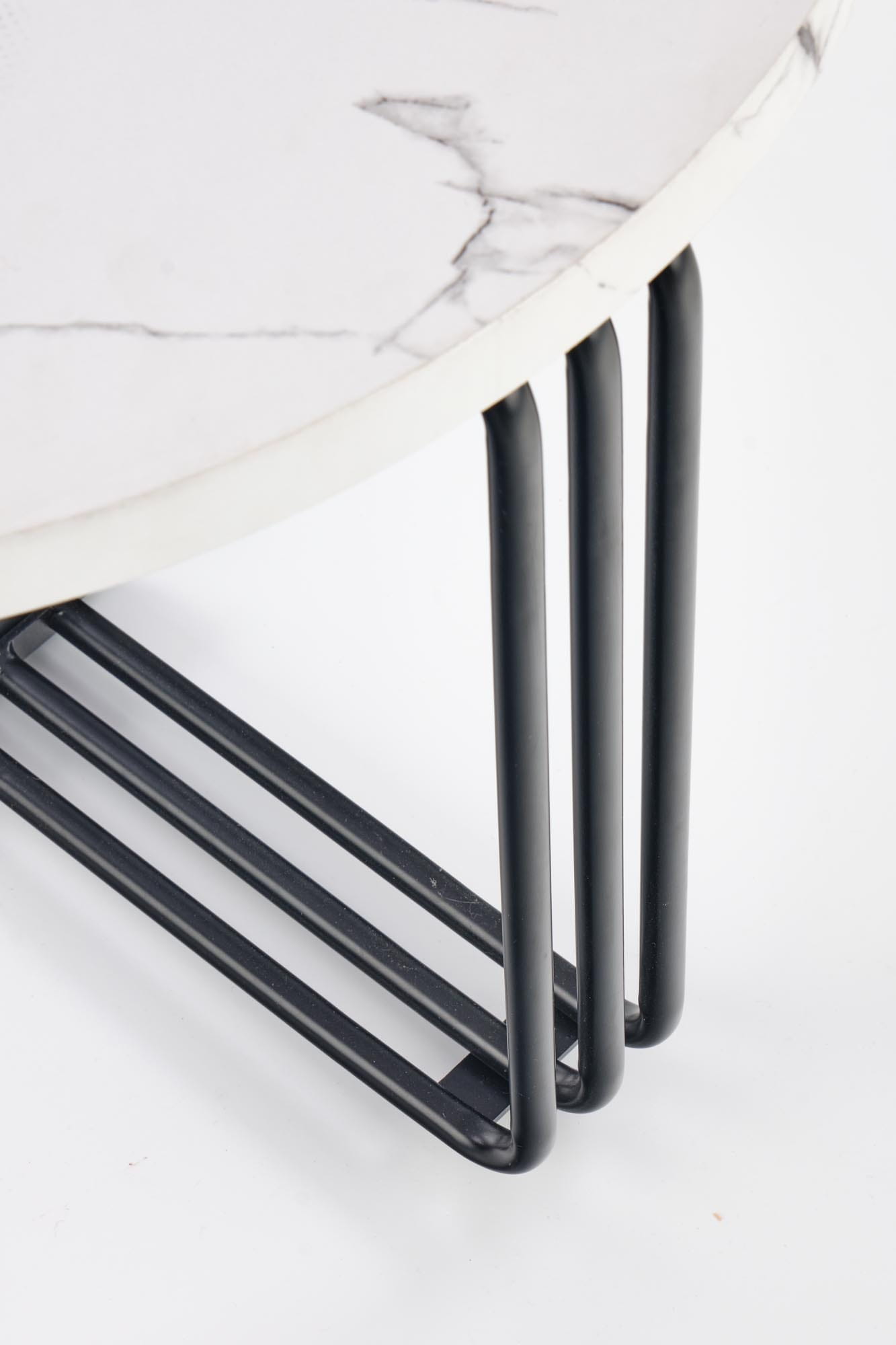 Jej okrągły blat o średnicy 55 cm w kolorze białego marmuru doskonale komponuje się z solidnym, czarnym stelażem o wysokości 41 cm.
