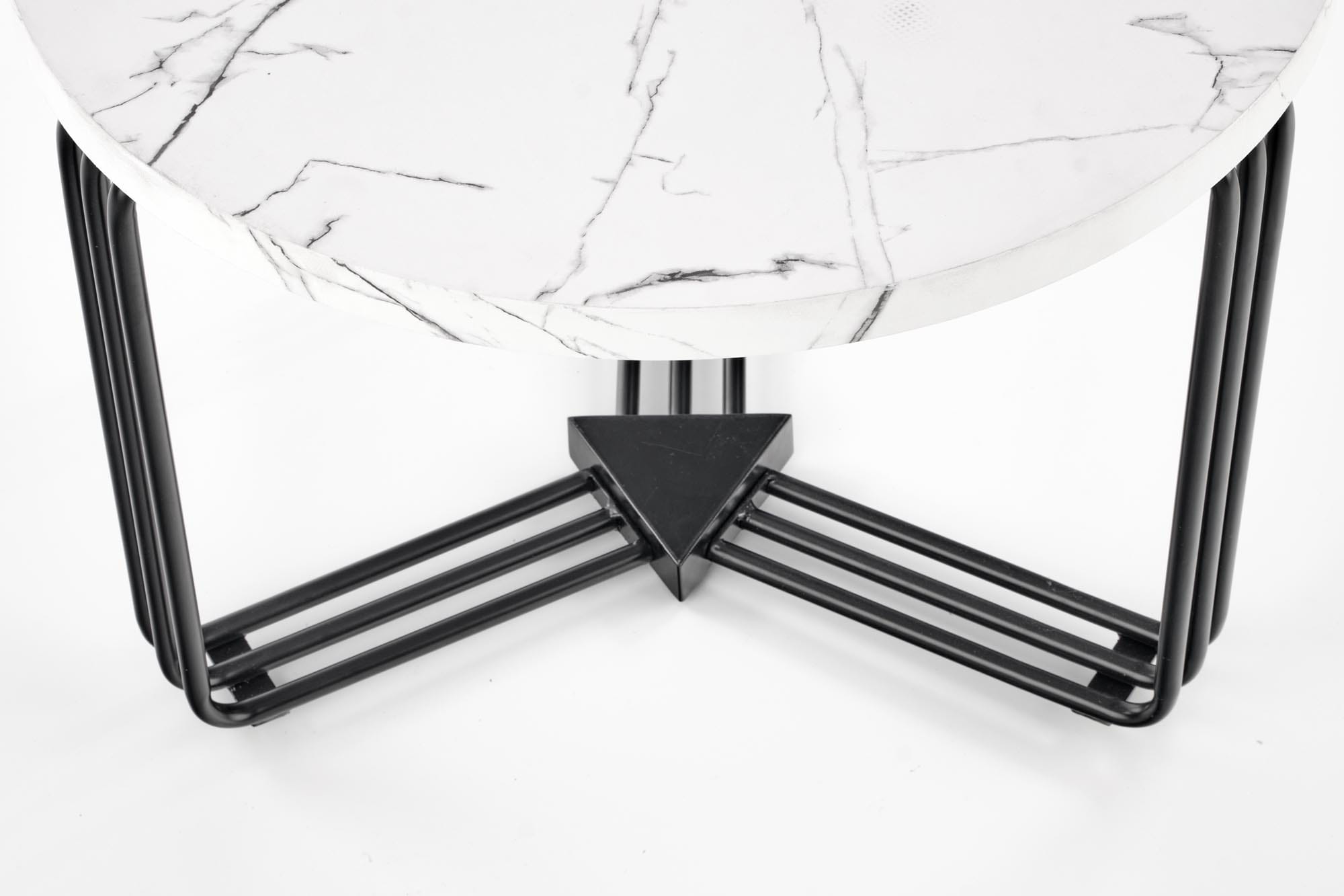 TICA M ława blat biały marmur, stelaż czarny, okrągła, nowoczesna,glamour