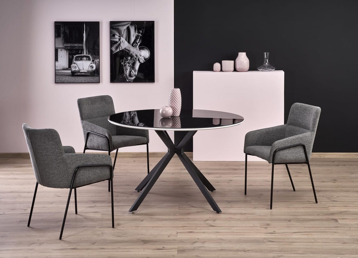 VELAR stół czarno biały 4 osobowy okrągły glamour