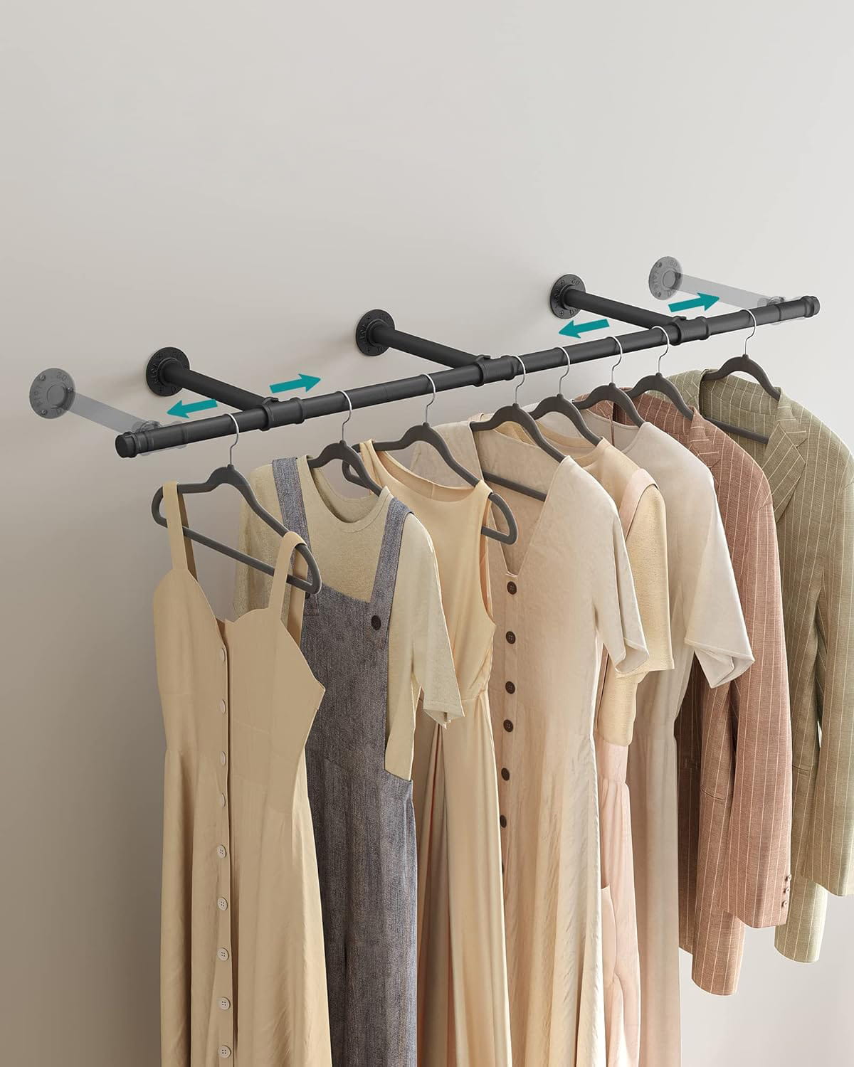 Odpowiednia odległość wieszaka od ściany sprawi, że Twoje ubrania nie pomną się ani nie ubrudzą o ścianę. Możliwość przesunięcia elementów montażowych w prawo bądź lewo ułatwia montaż wieszaka na różnego rodzaju ścianach. Pamiętaj, że podane maksymalne obciążenie drążka odnosi się do ściany z betonu bądź cegły.