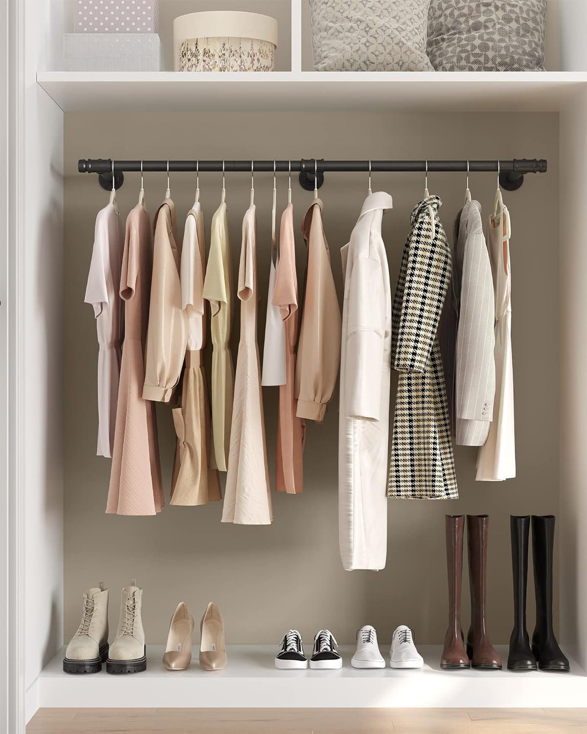 Masz dość bałaganu w przedpokoju czy też korytarzu? Twoja garderoba czy szafa pęka w szwach? Kurtki i płaszcze leżą na krzesłach i fotelach w salonie, sypialni i jadalni zamiast wisieć na wieszaku? Jeżeli odpowiedź jest twierdząca to dobrze trafiłeś. Prezentujemy drążek na ubrania, który wprowadzi ład i porządek. <b>Ten praktyczny mebel uporządkuje Twoją odzież. Drążek jest bardzo stabilny i wytrzymały, spokojnie przechowa płaszcze, kurtki, sukienki, koszule oraz marynarki. Ponadto na drążku możemy wieszać szale, szaliki czy też kominy. Jest on szczególnie przydatny w sezonie wesel i komunii, gdzie potrzebujemy zdjąć z wieszaka perfekcyjnie wyprasowane koszule czy sukienki. Produkt sprawdzi się w każdym przedpokoju, garderobie, sypialni czy korytarzu. Stalowa konstrukcja zapewnia stabilność mebla, dlatego jest to idealny produkt na każdą porę roku, szczególnie docenimy go w sezonie zimowym, gdy zawiesimy na nim ciężkie kurtki i płaszcze. Na drążku swoje miejsce znajdą również wyprasowane koszule i sukienki okolicznościowe. Zadbaj o estetykę swojego przedpokoju, korytarza czy też sypialni i garderoby wybierając produkty sprawdzone, o najwyższej jakości wykonania.