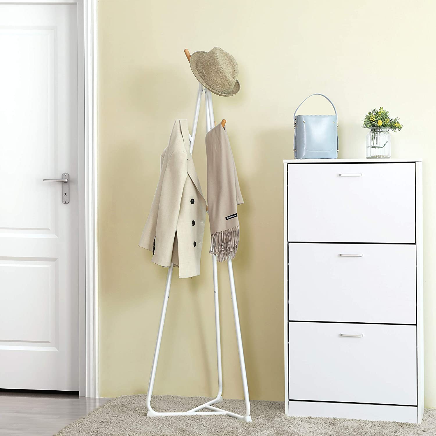 Trójkątna podstawa zapewnia stabilność wieszaka podłogowe.