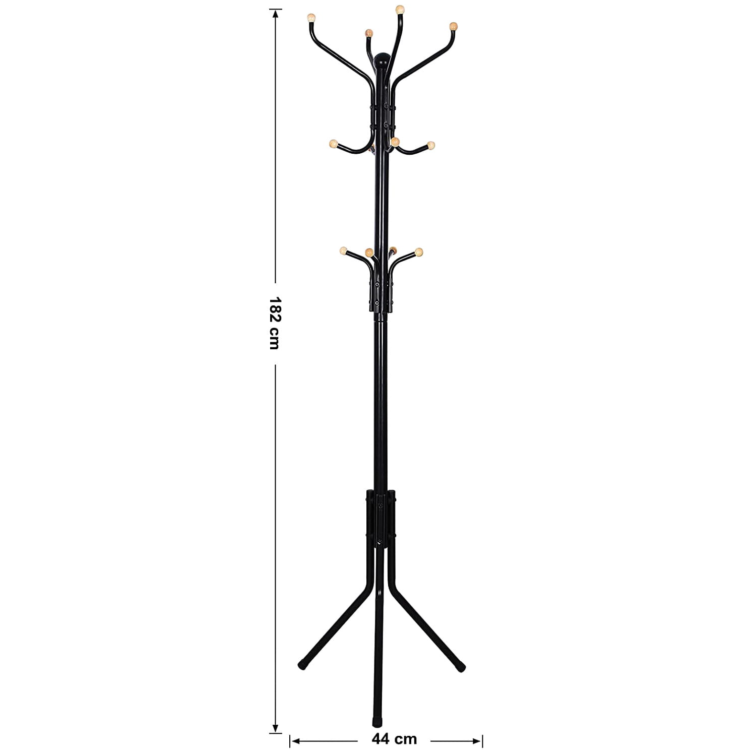 Ten niewiele zajmujący miejsca produkt posiada stabilną podstawę trójnogu, dzięki której mamy pewność, że produkt nie będzie się przechylał wraz z dodatkowym obciążeniem. Ponadto produkt został wyposażony w 12 zaokrąglonych haczyków do przechowywania płaszczy, kurtek, toreb czy też szali i czapek.