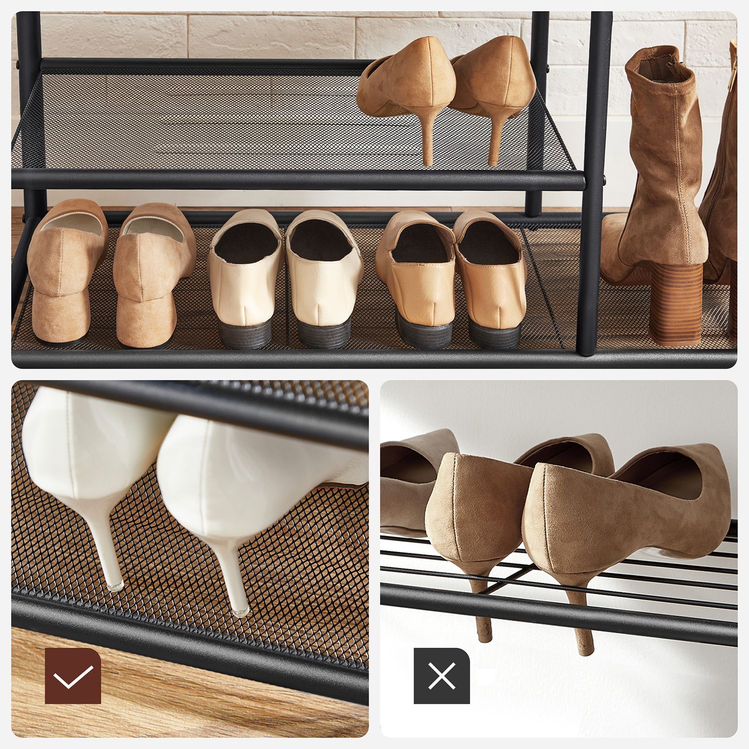 - Półki w formie siatki to bezpieczne rozwiązanie dla kobiecych szpilek.