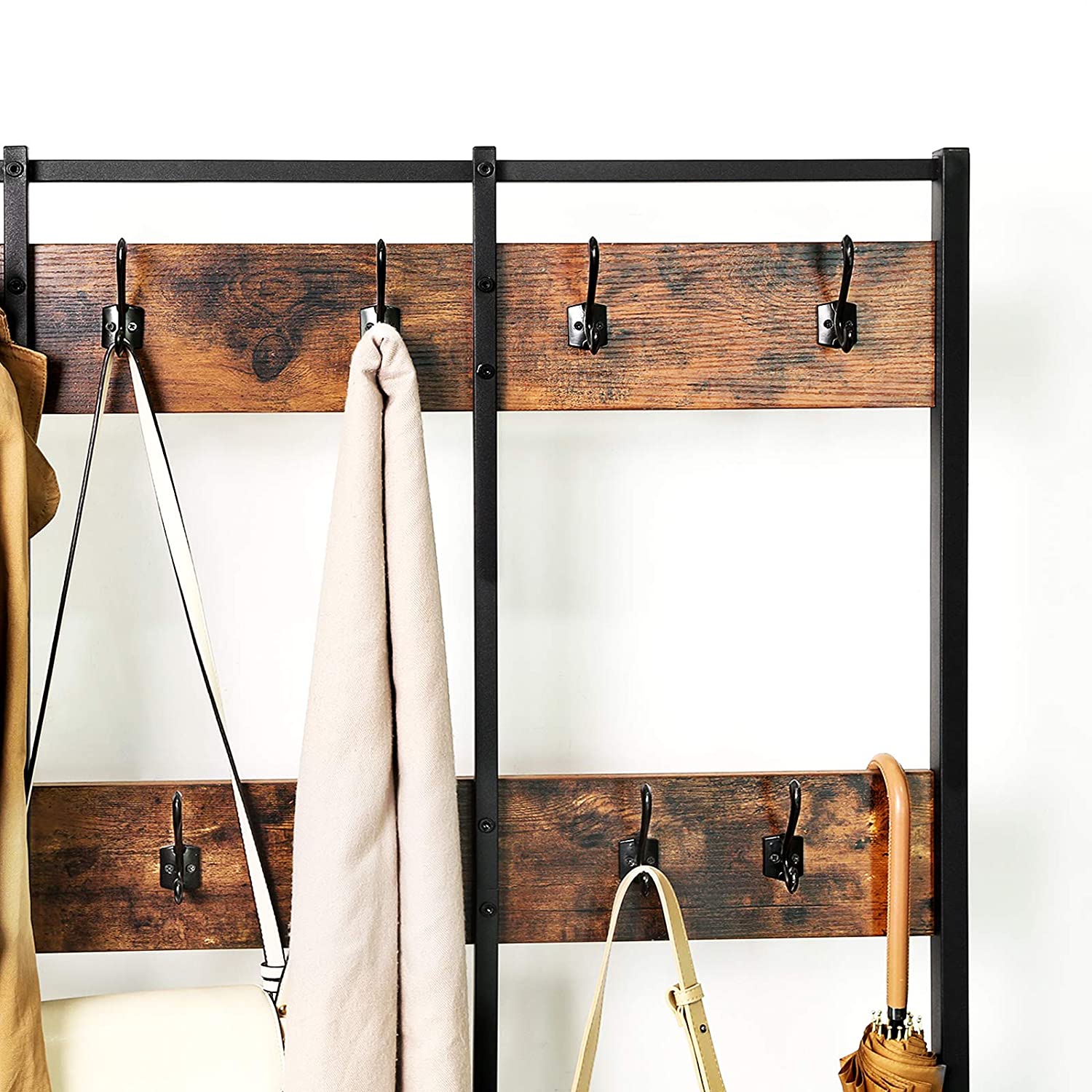 Metalowa konstrukcja zapewnia stabilność mebla, dlatego jest to idealny produkt na każdą porę roku, szczególnie docenimy go w sezonie zimowym, gdy zawieszamy na haczyki ciężkie kurtki i płaszcze, szale, szaliki oraz kominy.