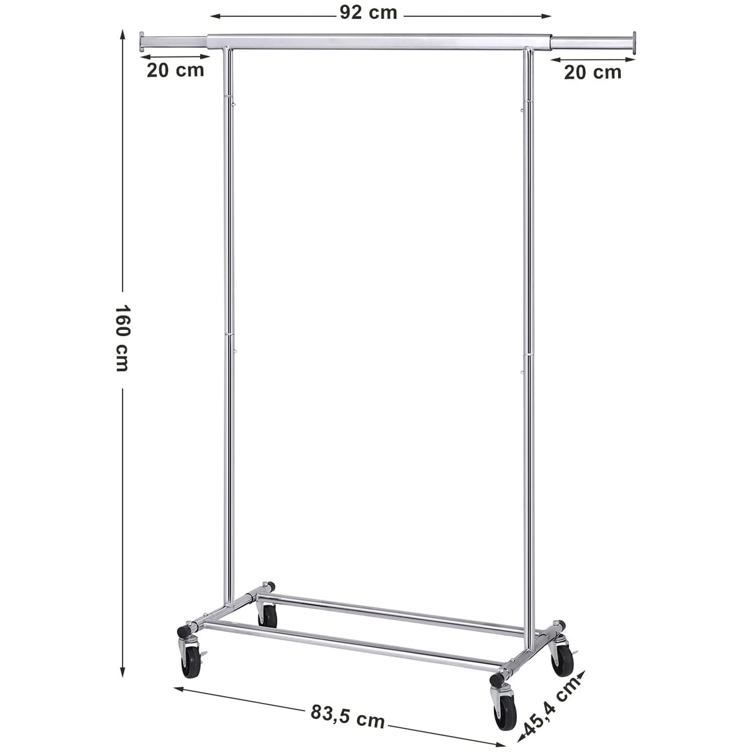 Możliwość wysunięcia drążka o 20 cm z każdej strony daje nam dodatkową powierzchnie na wieszane ubrania.